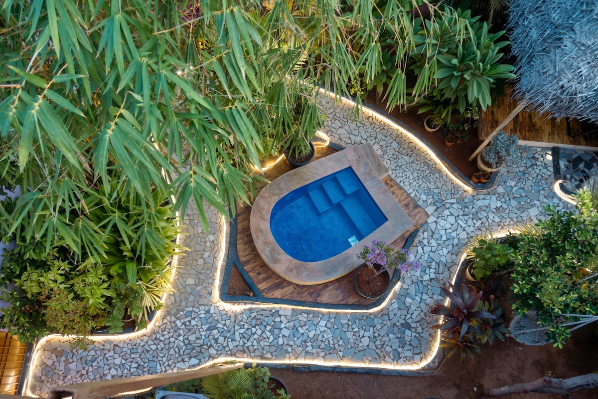 Descubre este refugio de una sola suite inspirado en Bali en Mahabalipuram, a pocos minutos del mar y de lugares emblemáticos de la UNESCO como el Templo de la Costa. Ubicada en una exuberante vegetación tropical, la suite de 300 pies cuadrados cuenta con una cama tamaño king, un techo abovedado de paja, aire acondicionado, TV y un jardín privado con una piscina de inmersión de 600 pies cuadrados. Con acabados de piedra terrosa, iluminación ambiental y áreas comunes íntimas que incluyen un césped y un mirador de paja, la propiedad ofrece una escapada tropical serena que combina lujo con encanto cultural