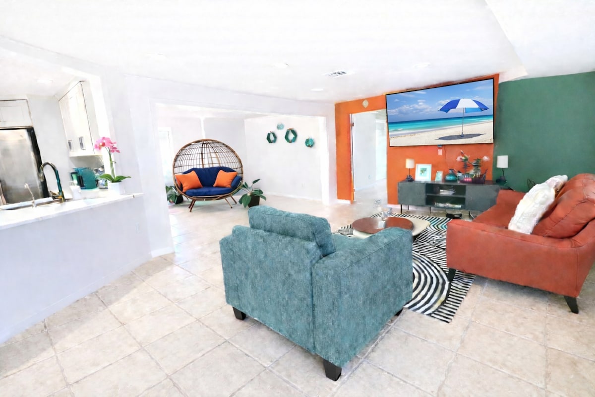 Relájate en una escapada relajada frente al mar en la soleada playa de Apollo. Esta casa moderna y acogedora combina la comodidad con el encanto costero, perfecto para parejas, familias, aves de nieve y trabajadores remotos que buscan relajarse, recargar energías y disfrutar del sol de Florida. Atraviesa la puerta principal para disfrutar de impresionantes vistas al agua, una piscina y la serena belleza del canal, lo que marca el tono para una estancia tranquila. Tómate un café de la mañana en el patio privado o acurrúcate junto a la chimenea al aire libre mientras el sol se pone sobre el agua.
