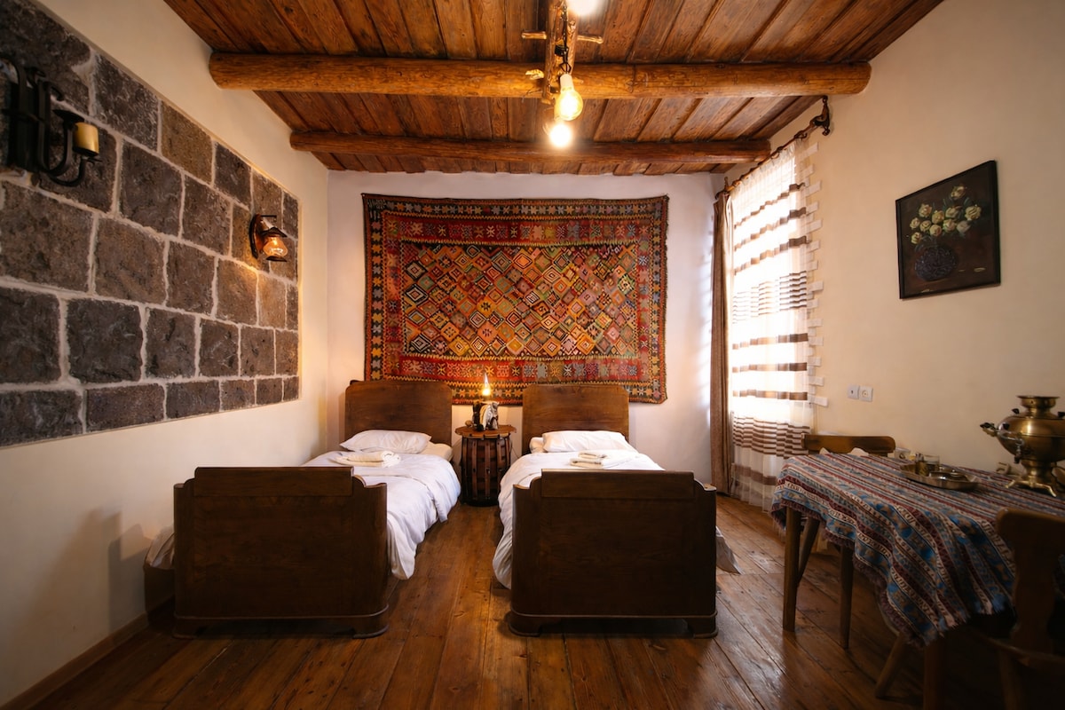 ¡Encantadora casa de estilo Gyumri, en el corazón de la ciudad! La zona de la casa tiene 45 metros cuadrados,combina la calidez del estilo antiguo y las comodidades modernas. La cocina totalmente equipada está equipada con todas las comodidades necesarias, como tostadora, cafetera, hervidor de agua, nevera, lavadora, plancha y tabla de planchar. El baño tiene una ducha refrescante, proporcionamos todos los artículos necesarios para el cuidado personal, incluyendo un peine, cepillo de dientes y secador de pelo. El sofá en la sala de estar es convertible.