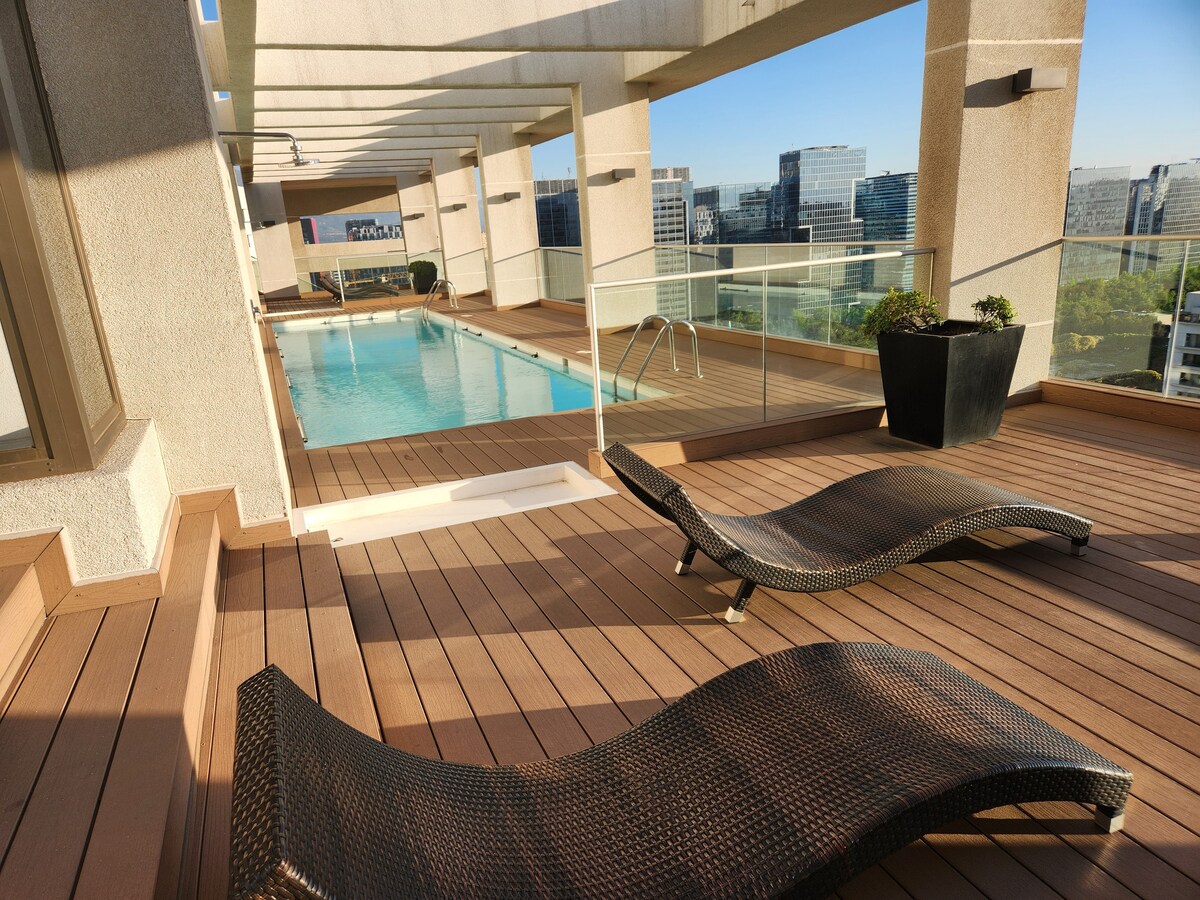 Despierta en el exclusivo barrio El Golf. Departamentos amplios, luminosos y completamente equipados. Cuenta con 3 dormitorios (principal en suite), living comedor integrado, cocina full equipada y una sala de estar ideal para home office. Acceso 100% autónomo, WiFi de alta velocidad y estándares de limpieza impecables. Ubicado a pasos del Metro y rodeado de restaurantes, cafés, parques y todo lo necesario para moverte por Santiago con total comodidad.