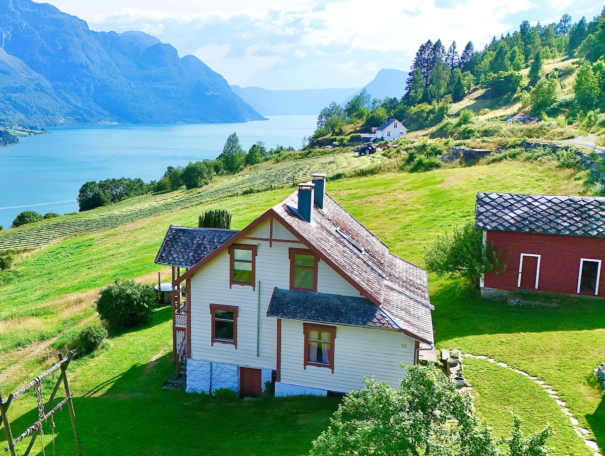 Encantadora y antigua casa con un toque romántico campesino ubicado en el corazón de la idílica Lustrafjorden. La casa tiene todo lo que necesitas para disfrutar de una estancia acogedora y tranquila junto al fiordo, incluida la larga distancia del vecino más cercano, acceso a una bonita zona de baño en la planta baja de la casa, balcón y balcón de invierno de vidrio asociado, jardín grande y floral, varios grupos de asientos al aire libre e interiores, hornos de leña en múltiples espacios de vida y una cocina bien equipada con electrodomésticos.