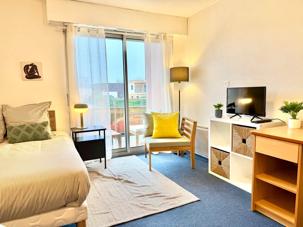 Cottage dúplex de 40 m² para 4 personas situado en una encantadora residencia muy tranquila. Situado cerca del Domaine de Limère con un campo de golf de 18 hoyos y balneadas, centro de balneoterapia y bienestar, tendrá 1 dormitorio, 1 sofá cama y 1 baño. También puede disfrutar de un espacio privado al aire libre con una pequeña terraza. Ideal para golfistas, familias y viajes de negocios. Las sábanas y toallas están incluidas, ¡WIFI gratuito!
