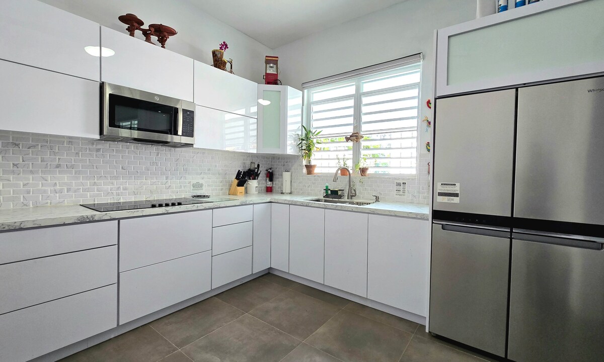 Casa de 3 dormitorios recién remodelada. Impresionantes vistas al mar, desde dentro y fuera. Tranquila parcela en esquina con un camino a una playa tranquila con vistas al faro de Arecibo y Poza Obispo. Cocina totalmente equipada con electrodomésticos nuevos, perfecta para estancias largas. Las camas son de espuma viscoelástica muy cómoda. Arecibo está en una ubicación céntrica para verlo todo. Cerca del centro histórico de Arecibo, de 500 años de antigüedad, el centro gastronómico, La Planta, Cueva Indio, Cueva Ventana y muchas playas hermosas. Unidad de arriba, abajo está desocupado.