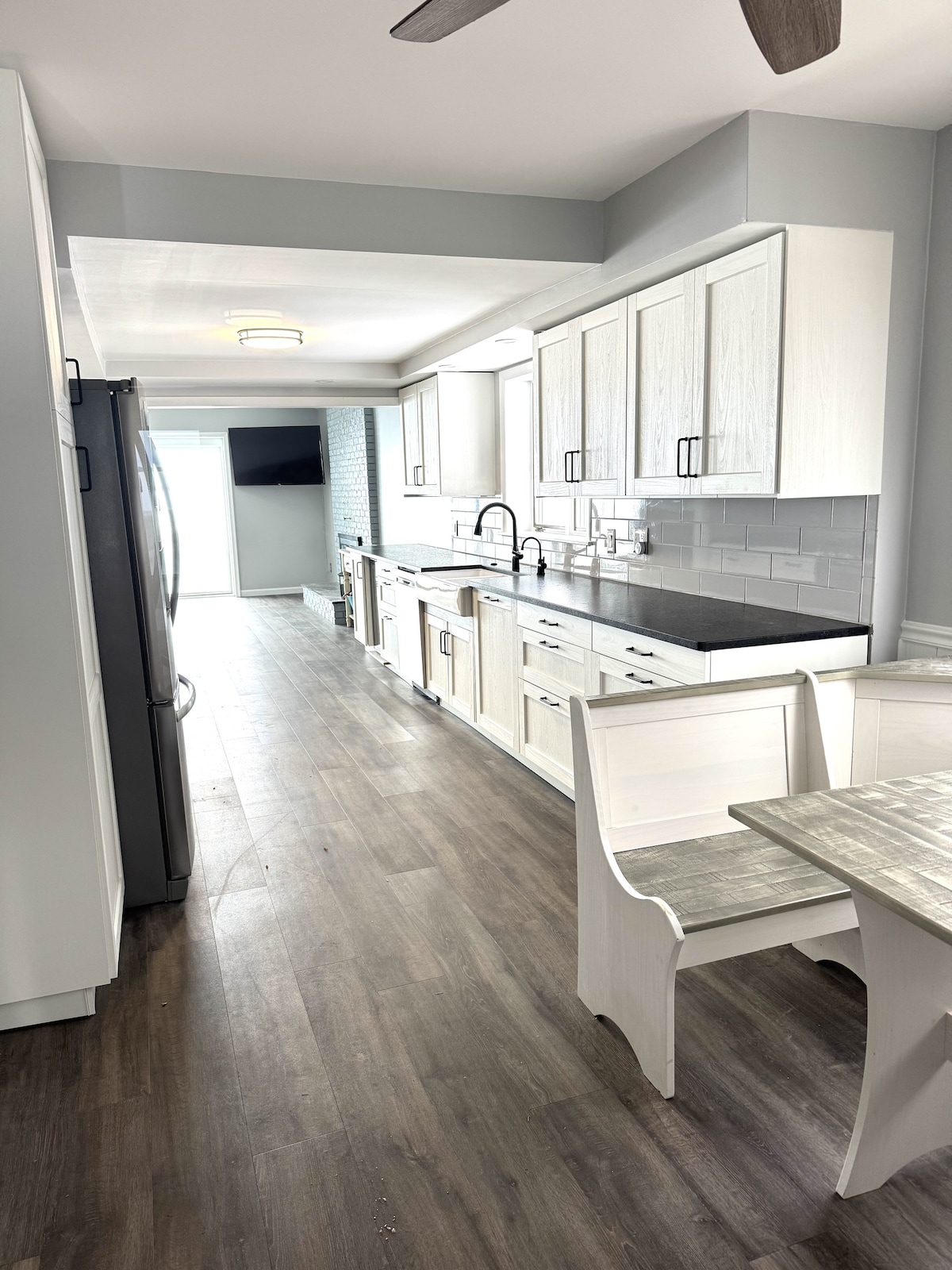 Disfruta de tiempo de calidad con toda la familia en un espacio acogedor y moderno dentro de esta encantadora casa de campo de planta abierta, recién remodelada. Cocinen juntos en una cocina completamente nueva, disfruten de la arena en el patio trasero que conduce a la bahía, relájense en los columpios, acurrúquense con un libro junto a la chimenea o relájense en la terraza con vistas al lago para rematar la noche. Aléjate de la vida ajetreada y disfruta de la tranquilidad frente al mar: este espacio seguramente será un hogar lejos de casa.