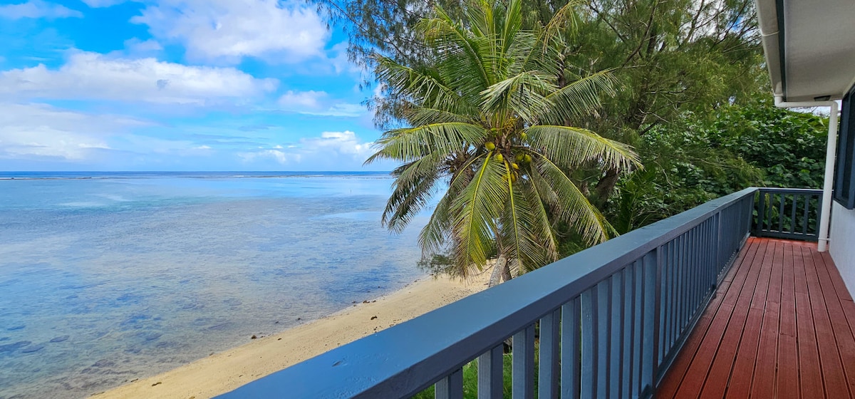 Nuestra espaciosa villa frente a la playa está a solo unos pasos de la playa. Hay una gran terraza para comer y relajarse, que tiene una vista clara del océano. El trabajo de artistas locales se presenta en la villa, proporcionando una sensación vibrante y cálida de las Islas Cook. Con el océano a tus pies, hamacas y vistas al atardecer, este es el lugar perfecto para relajarse, descansar y disfrutar de la vida isleña. Tenemos internet ilimitado (a través de Starlink) y hemos instalado un filtro UV para el agua potable.