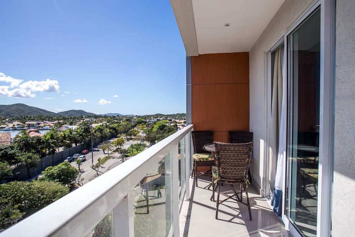 ¡Ubicado entre Praia Grande y Lagoa de Araruama! A 4 minutos del aeropuerto de Cabo Frio, a 10 km del centro de Arraial, a 14 km del centro de Cabo Frio. Acceso a la playa de Massambaba (Continuación de la playa Grande) por un sendero de 800 metros. Zona de ocio con gimnasio, sala de juegos, sauna, sala de cine, piscinas para adultos y niños frente a la laguna. Playa privada de la laguna con canchas de fútbol, voleibol, futvolei, etc. Espacio infantil y parque infantil. Restaurante interno con aperitivos, comidas y bebidas.