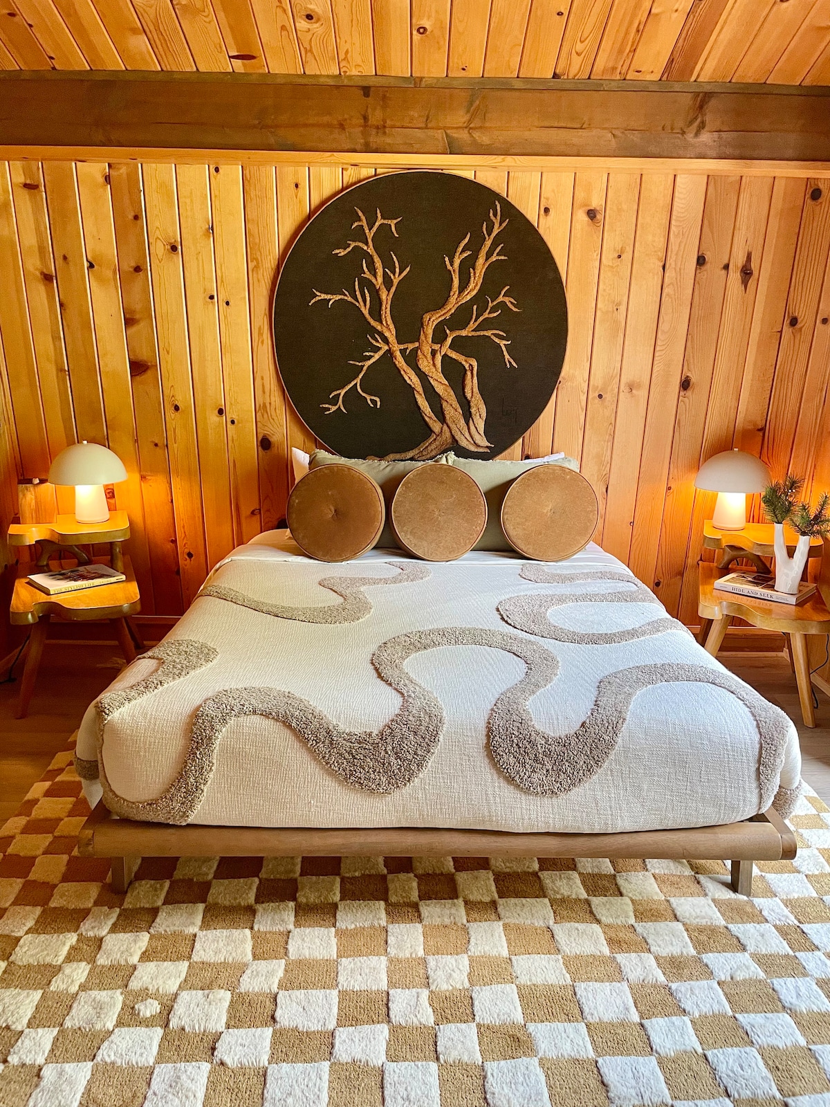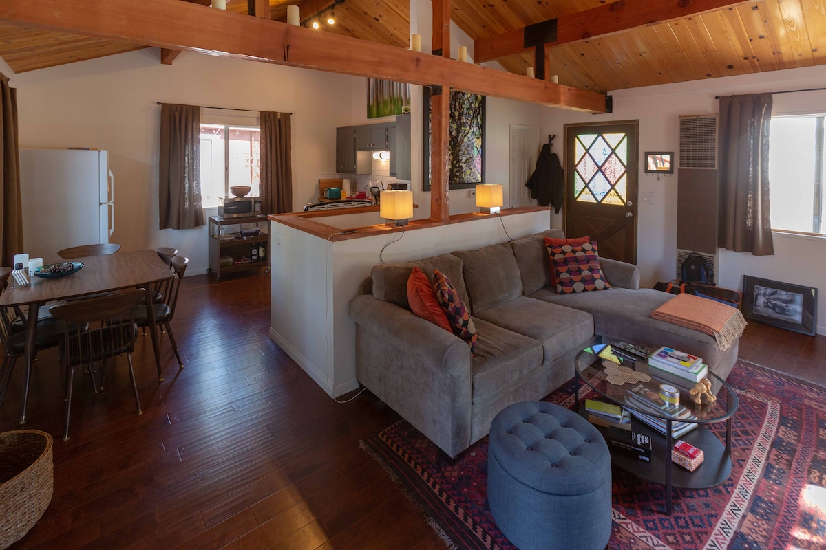 Te damos la bienvenida a The Den, una cabaña de los años 60 reinventada por LBL Design Co. Este refugio romántico y de mal humor combina techos con almendras, tonos cálidos de madera y acabados modernos, completos con una bañera de hidromasaje privada bajo los pinos. Perfectamente centrado en las montañas de San Bernardino, es tu base para los días de nieve, aventuras en los senderos y noches lentas y acogedoras junto al fuego. Bebe vino en la terraza, asa s'mores bajo las estrellas y relájate junto a la chimenea brillante en nuestro lujoso sofá de terciopelo.
