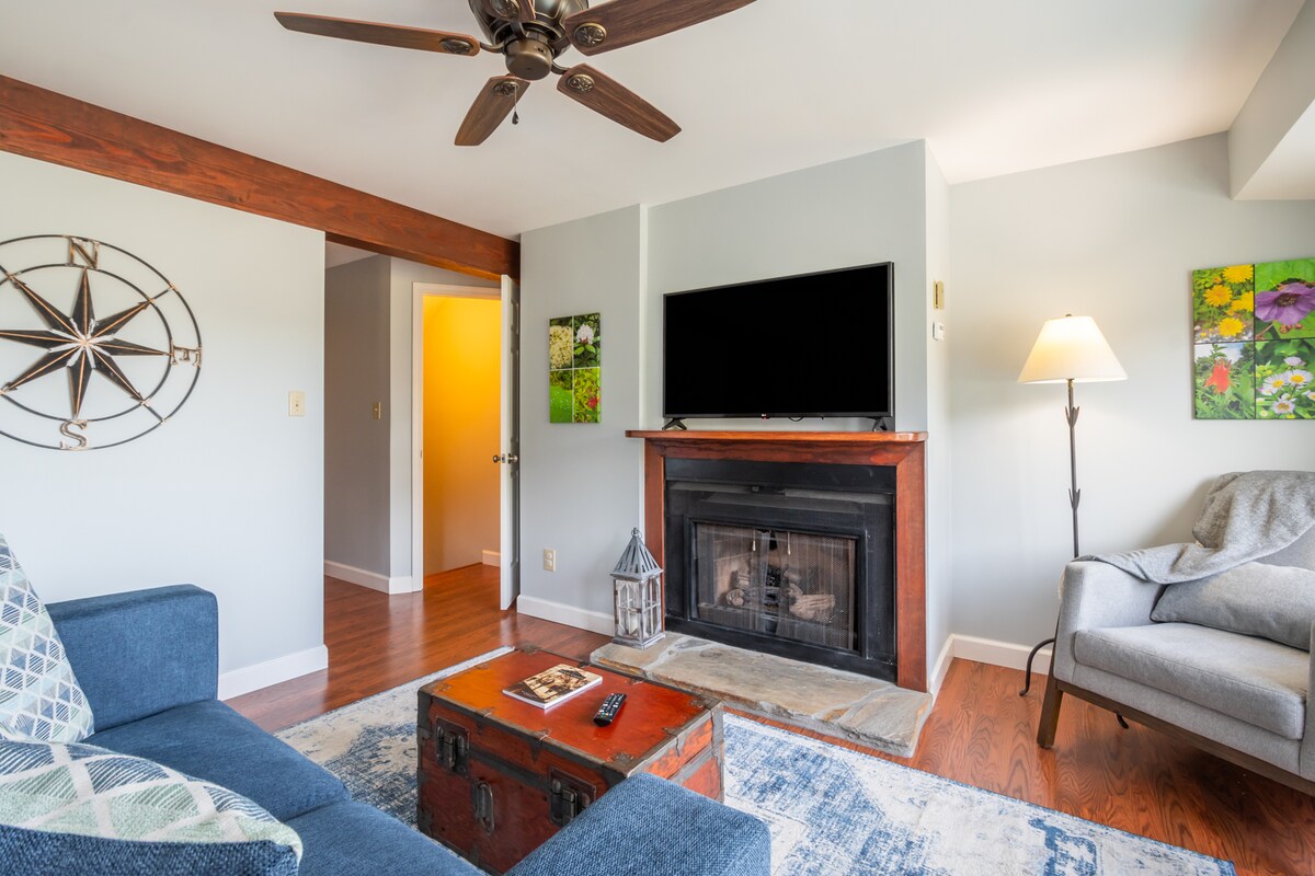 Adorable condominio a nivel del jardín con patio y chimenea