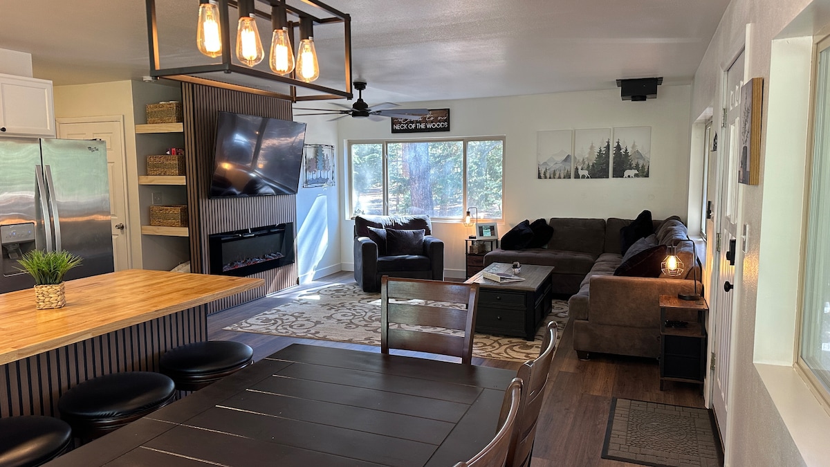 Escápate de la ciudad a este moderno refugio de cabañas totalmente equipado y ubicado en el centro de la ciudad, en una calle sin salida tranquila. Disfrute de una de las mejores vistas del pueblo. Barbacoa en el patio trasero mientras disfruta de una copa de vino y disfruta de la primera fila, vista panorámica del pueblo y el prado desde el borde de la mesa. Disfrute de actividades nocturnas en nuestra gran área de hoguera. 1850 pies cuadrados. Hay un montón de estacionamiento, senderos disponibles en la entrada, a 100 millas. Pescando a una milla de distancia. Mejor relación calidad-precio en la montaña!!