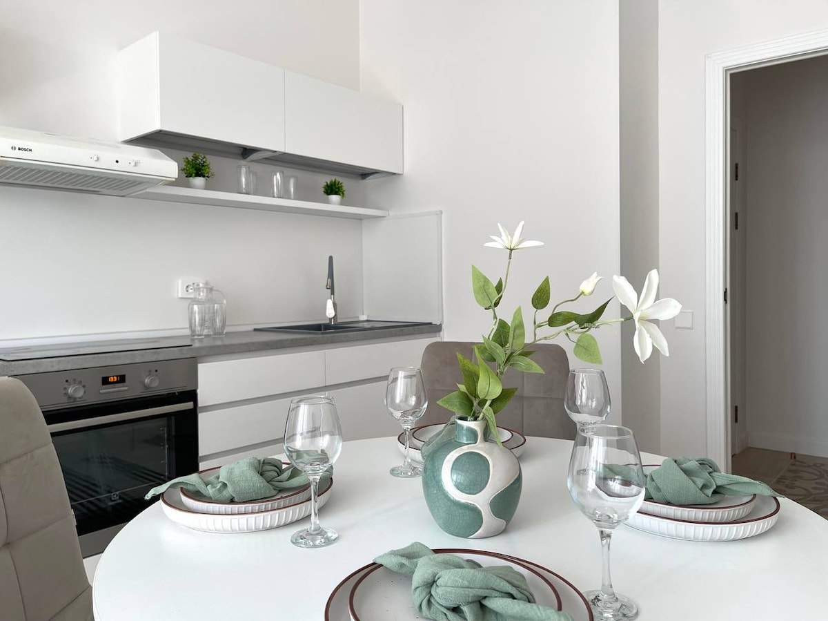 Un alojamiento ideal para aquellos que quieran experimentar el ambiente de la ciudad desde dentro. El apartamento está situado en el corazón de la ciudad, cerca de todos los principales lugares de interés. Su diseño está hecho en colores claros y suaves, creando una atmósfera de comodidad y tranquilidad. El apartamento tiene todo lo necesario para una estancia cómoda: una cocina moderna, un dormitorio acogedor, una amplia sala de estar. Gracias a su conveniente ubicación, podrá llegar fácilmente a tiendas, cafeterías y restaurantes.