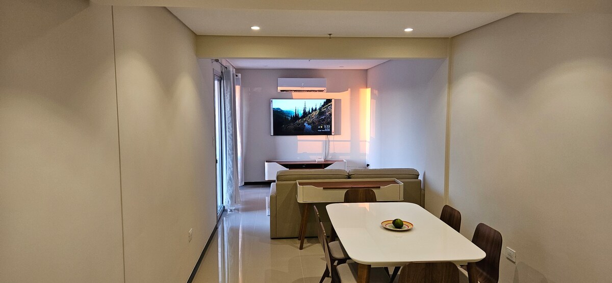Disfruta de una ubicación privilegiada y segura en el corazón de Asuncion , cerca de la zona comercial , del centro histórico, en el hermoso barrio las mercedes. Repone energías en este cómodo departamento con un balcón de 65 mts2 estilo patio, con todos los electrodomésticos, TV en todos los ambientes y wifi de alta velocidad. Aprovecha las amenidades de lujo del edificio , su piscina infinita con vista a la bahía , gimnasio, Gimnasio , área de juegos, salón de eventos, área para fogatas.