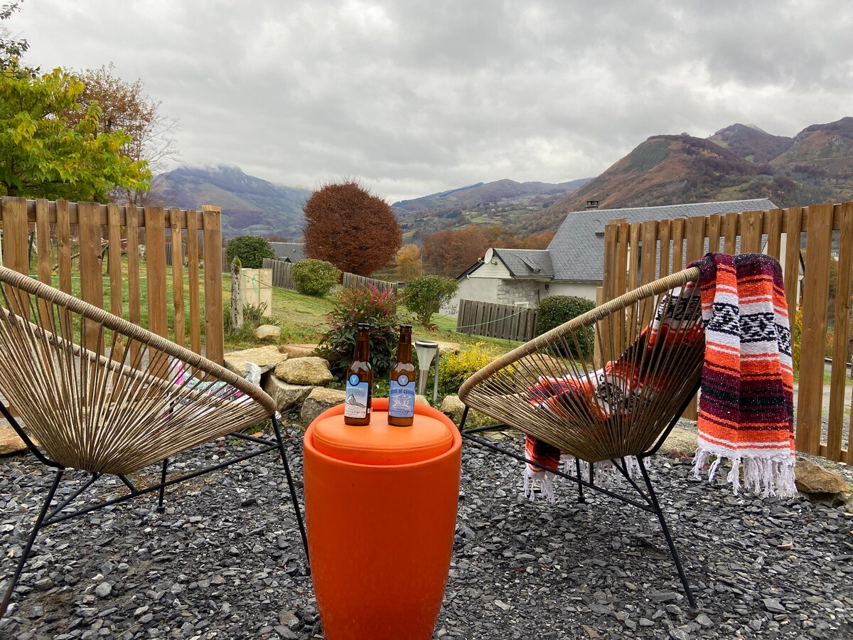 alquiler elegante, cómodo y acogedor. Situada en las alturas de Gaillagos pueblo soleado del Val d'Azun. A 10 minutos de Argelès-Gazost, a 20 minutos de Lourdes. Se proporciona toda la ropa de cama: las camas están hechas para su llegada. Amplio espacio exterior y vistas panorámicas a las montañas de los Pirineos. Terraza orientada al sur. Bicicleta de montaña, senderismo y esquí nórdico en Couraduque-Soulor. Parque zoológico en Argelès-Gazost. Cerca del Pic du Midi, de los Santuarios de Lourdes y del Circo de Gavarnie...