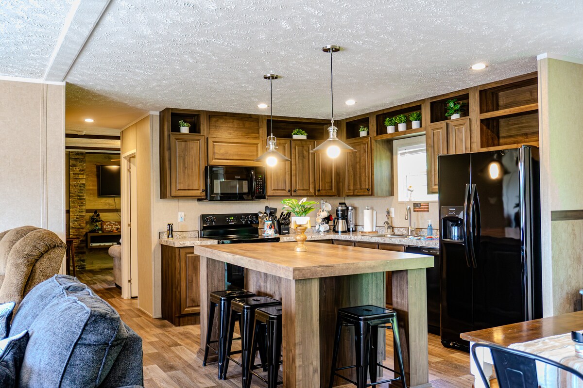 Te damos la bienvenida a esta casa recién remodelada de 4 dormitorios y 3 baños. Justo fuera de Columbia. Cerca de la universidad de Missouri, tiendas y restaurantes. Ya sea que estés en la ciudad viendo un juego o visitando a familiares, esta casa tiene algo para todos. Cada dormitorio tiene su propio televisor. Hay juegos de mesa, siéntate y relájate en la terraza y disfruta de la vista o haz una pequeña caminata. ¡La casa se encuentra en 12,5 acres! Mesa de comedor grande para adultos y una mesa más pequeña para niños.