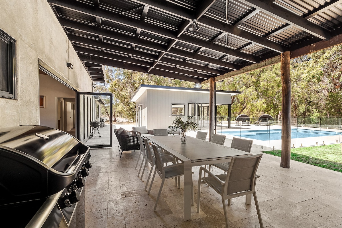 Diseñada con el placer en mente, esta lujosa casa aislada se encuentra en 14 acres de matorrales privados. Lo que te encantará: - Playas nocturnas de Gnarabup/Prevelly - Cerca de Leeuwin Estate Winery & Voyager Estate - Junto al Parque Nacional Leeuwin con el paseo del Cabo al Cabo. - A 10 minutos en auto del municipio de Margaret River. - Baño de spa grande con vistas del bosque. - Chimenea de piedra abierta. Cocina de chefs totalmente equipada. - Dormitorios tamaño king con baño privado. - Retiro perfecto para 2 parejas.