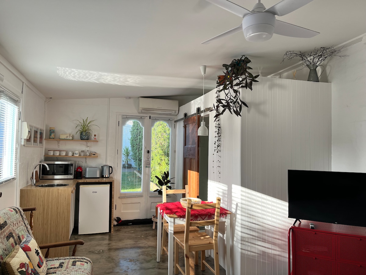 Calificado como uno de los 14 mejores Airbnb de Sídney por Urban Space. Estudio lleno de luz, repleto de flores y helechos, y una gloriosa bañera de piedra para dos. Se abre a amplios jardines con acceso a la playa desde la puerta del jardín. Todos los elementos esenciales: baño privado, cocina americana con microondas, tostadora, cafetera y jarra. Barbacoa y anillo de gas adyacentes. Productos orgánicos y frutas frescas incluidas con el desayuno. Por favor, avisa si eres intolerante al gluten o la lactosa. Nota: Retiro solo para adultos, no se admiten niños ni mascotas.