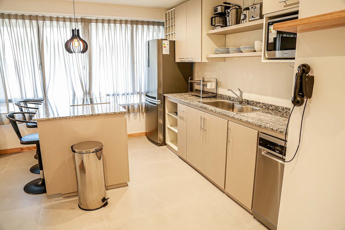 TU LUGAR EN EL CORAZÓN DE BUENOS AIRES Los esperamos en nuestro amplio y luminoso departamento duplex: la habitación está arriba y abajo está la moderna cocina abierta al comedor y sala integrados, con baño con ducha, internet, tele por cable, aire acondicionado frío-calor, mesa alta de comedor, caja de seguridad, luz de emergencia, detalles de categoría y conectado por el transporte público a toda la capital.