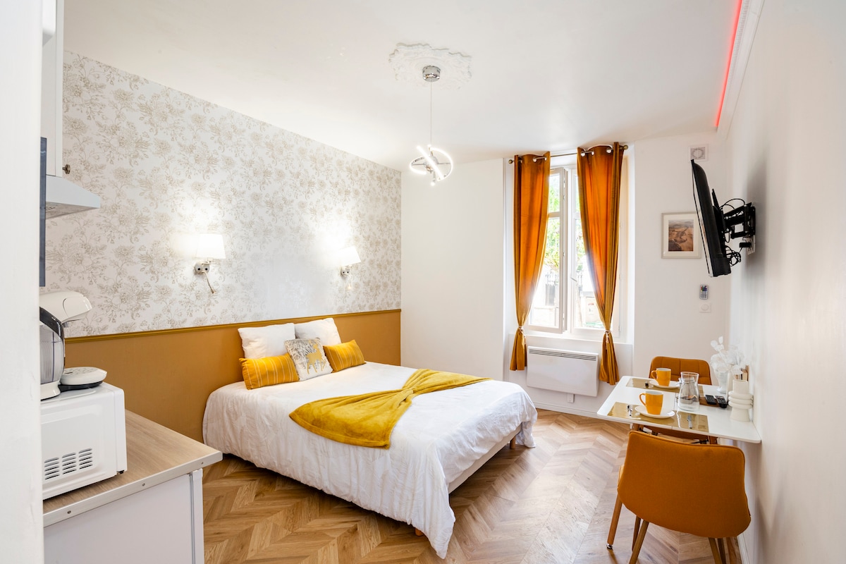 Bienvenido a nuestra suntuosa suite, ubicada en el corazón de una casa burguesa de la época de la edad de oro del siglo XIX Tan pronto como cruce la puerta, sumérjase en la opulencia y la elegancia que caracterizan este período excepcional de la historia. Los refinados detalles arquitectónicos, como las molduras, las ventanas en arco y las molduras recién restauradas, transportan a los huéspedes a un viaje en el tiempo.