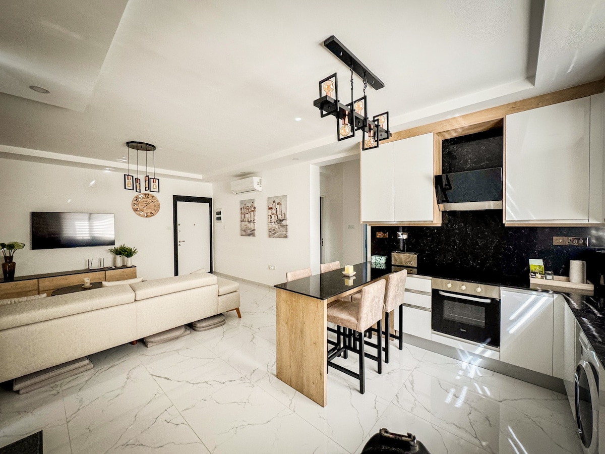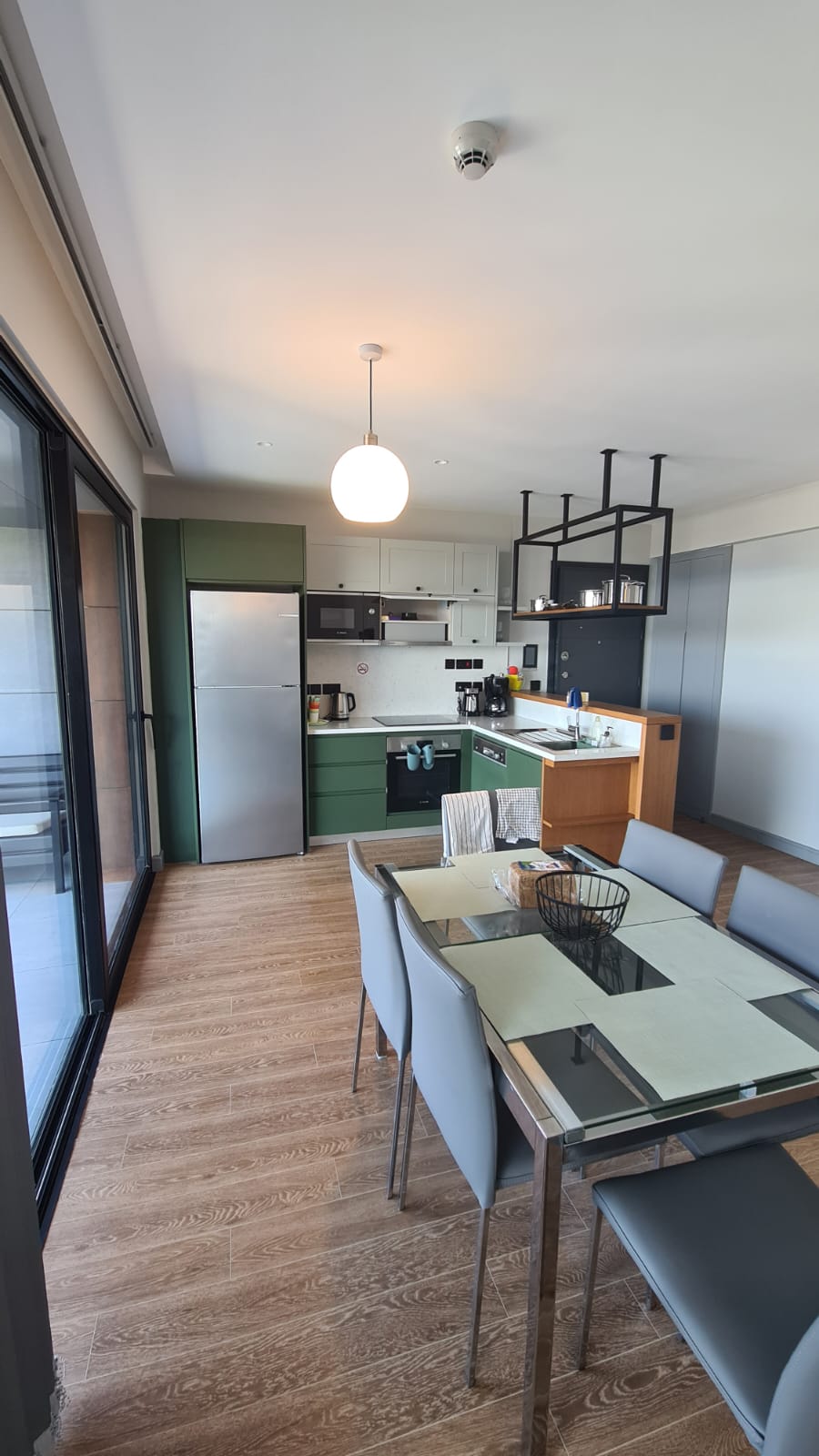 Nuevo lujoso 2BR con vistas panorámicas al mar en el norte de Chipre, perfecto para familias y parejas que buscan comodidad y estilo. Ubicado en un complejo seguro de primer nivel con seguridad 24/7, ascensor de lujo, piscina infinita en la azotea, gimnasio, sauna y minimercado en el lugar. A poca distancia a pie de la playa de arena y el castillo de Otelo. Wifi rápido, aire acondicionado completo, cocina moderna totalmente equipada, lavadora/secadora. Estacionamiento gratuito y carga de vehículos eléctricos. Zona tranquila y segura cerca de las playas prístinas de Karpaz.