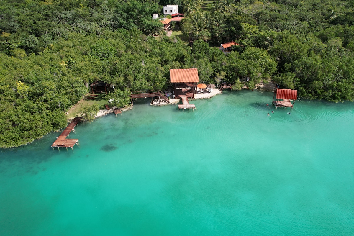 EXCLUSIVO PALAFITO SOBRE LA LAGUNA DE LOS 7 COLORES EN BACALAR Despierta con vistas inigualables y sumérgete en la tranquilidad de la laguna desde nuestro cómodo y acogedor espacio. Ubicado cerca del centro, restaurantes y los mejores rincones de Bacalar. Si buscas desconexión, naturaleza y confort, este es el lugar perfecto para ti.