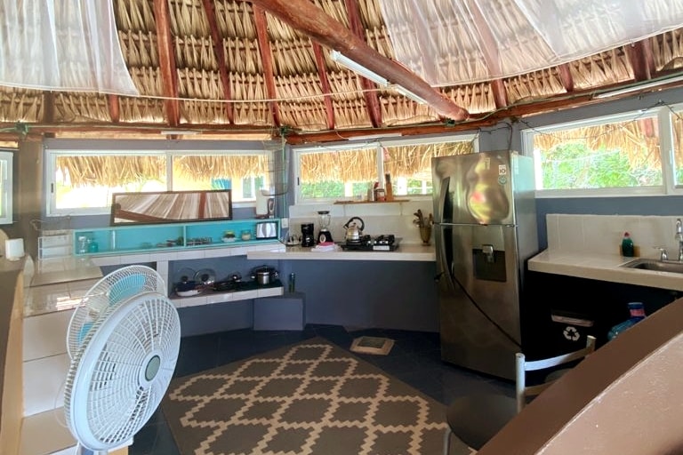 Nuestro tercer departamento, se siente vibrante, fresco y tranquilo; esta situado a 3 minutos de la laguna de Xul-Ha, la cual es parte de la laguna de 7 colores, esta habitación es ideal para parejas, romántica y moderna, se respira paz, despierta con los sonidos de la naturaleza, escucha el cantar de los pájaros y si tienes suerte hasta monos que viven cerca te visitaran. Bacalar y Chetumal están a 12 minutos, el co-anfitrión es taxista de Xul-Ha y vecino por si se requiere el servicio.