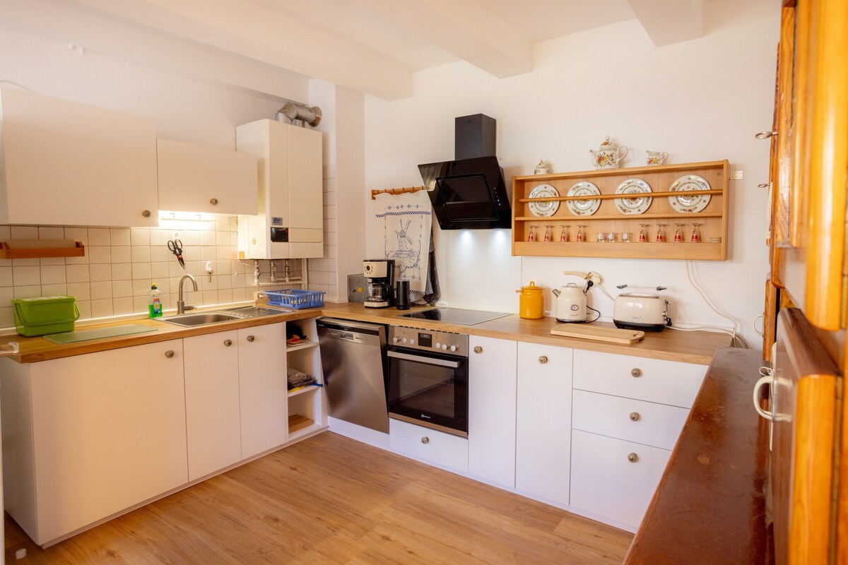 Te mudas a un apartamento independiente con baño y cocina americana en mi casa en una zona tranquila en la muralla exterior de la ciudad. La cocina está equipada con cafetera, microondas, vitrocerámica y nevera con congelador, así como vajilla para hasta 6 personas. El acogedor y moderno apartamento de vacaciones se encuentra en la planta baja y tiene su propio acceso al jardín.