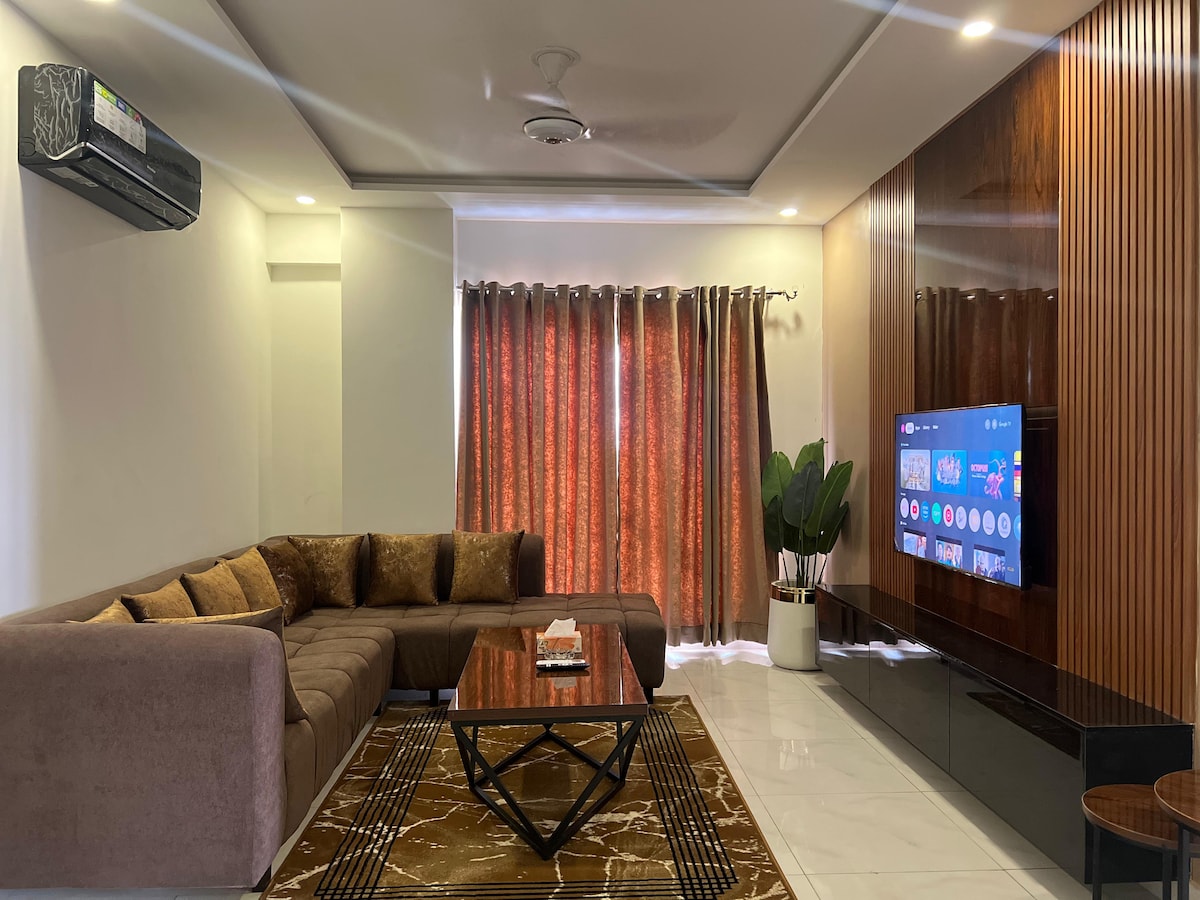 Luxury 1 BHK fully furnished Apartment for couples, friends, solo females and families as well located at Peaceful and private area near Eiffel where everything is in walking distance in the heart of of Bahria Safe private & Secure Location - Self Check In with Pin Code - No need to meet anyone & No reception - 24/7 Security - Modern Aesthetic design - King Sized Bed With Soft Spring Mattress - Ac only in bedroom - Dry Kitchen Only - Free Street Parking - Prime Location For more info