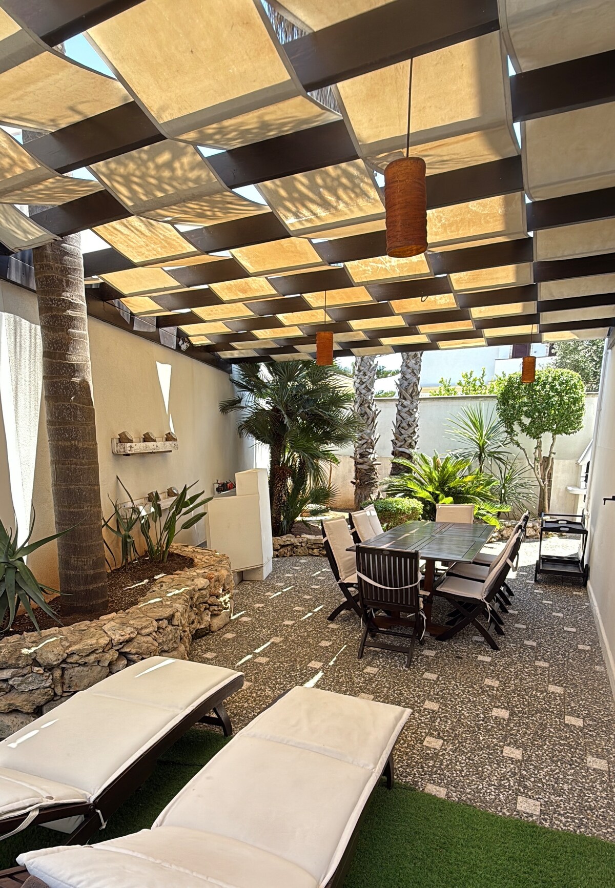 Te sentirás en el cielo en los sofás de la terraza del centro histórico. Azul por todas partes: el cielo y el mar se funden. El silencio solo lo rompen las voces de las gaviotas. Los aperitivos al atardecer y las noches llenas de estrellas serán inolvidables. El hogar ideal para aquellos que buscan tranquilidad y paz: acogedor, limpio y familiar, con un diseño elegante y exclusivo. Desde el típico patio del centro histórico, dos tramos de escaleras te llevarán al ático. Recientemente renovado y amueblado con cuidado por los detalles más pequeños, está listo para darte la bienvenida a unas vacaciones de ensueño. Cuenta con salón, cocina bien equipada con lavavajillas, 1 dormitorio con chimenea, 1 dormitorio con TV y escritorio, 1 baño y 2 preciosas terrazas para uso exclusivo. PLUS 1: TERRAZA EXTREMADAMENTE POCO COMÚN AL MISMO NIVEL DEL APARTAMENTO: equipada con cocina al aire libre, mesa de comedor a la sombra de la pérgola de bambú y gran ducha al aire libre hecha de azulejos típicos de Salento. Así que puedes, a través del gran ventanal de la sala de estar, cocinar, almorzar, relajarte o tomar una ducha refrescante directamente en la terraza. PLUS 2: EXCLUSIVA TERRAZA SUPERIOR: una escalera de unos pocos escalones te llevará a la gran terraza con vistas al mar de la playa de Purità: equipada con sofás integrados, una espaciosa pérgola de bambú para refugiarse del sol, tumbonas de colores y una gran mesa para cenar bajo las estrellas. • ¡La casa y las terrazas son para tu uso completo y exclusivo! • El apartamento es adecuado para amigos adultos y familias con niños. • Tenemos un potente aire acondicionado y wifi, gratis para nuestros huéspedes. • Hay lavavajillas y lavadora disponibles. Una persona de confianza te entregará las llaves a tu llegada. Para cualquier necesidad, puedes ponerte en contacto con nosotros por teléfono, correo o WhatsApp. Instagram @mactoia Esta tranquila casa se encuentra en la histórica ciudad costera de Gallipoli. Camina hasta supermercados, pastelerías, excelentes restaurantes, clubes de moda, el puerto deportivo y la hermosa playa. NIÑOS: En presencia de niños, la gran terraza superior requiere la presencia y supervisión de un adulto. ESCALERA: Para llegar al apartamento hay que subir dos tramos de escaleras. También desde la primera terraza hay una docena de escalones para subir a la terraza superior. ESTACIONAMIENTO: No está permitido entrar en el casco antiguo de Gallipoli en coche: puedes aparcar tu coche en el aparcamiento del puerto deportivo y continuar a pie: la casa está a unos 200 metros de distancia.