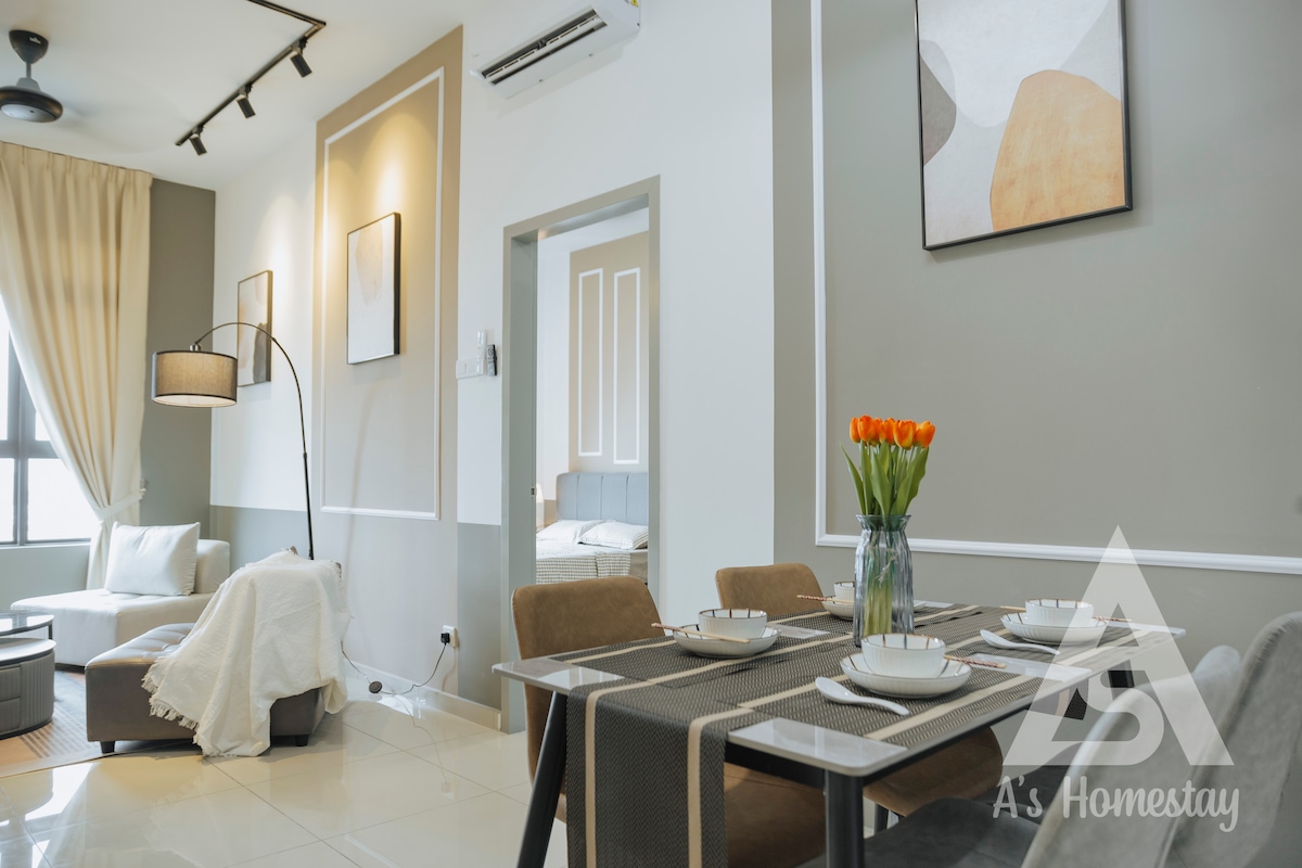 StarSuiteAC: ¡Alojamiento de lujo sobre las nubes! Un dúplex lujosamente diseñado en el piso alto, que ofrece una impresionante vista en la alfombra de las nubes del horizonte de Kuala Lumpur. ¡Relájate bajo el techo estrellado parecido a una galaxia y experimenta una escapada como ninguna otra! Disfruta de una sala de karaoke insonorizada, billar y hockey de aire, y un cine en casa con sonido envolvente para una verdadera experiencia cinematográfica. Instalaciones: cocina, nevera, microondas, arrocera, freidora de aire, filtro de agua, lavadora (con secadora), silla de masaje, etc.