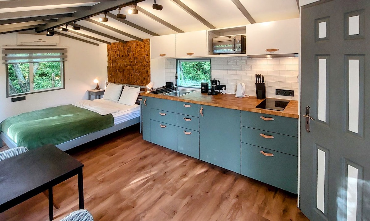 La mezcla perfecta de sostenibilidad, intimidad y lujo te espera en la cabaña prémium de Slowood Cabins, en el centro del bosque en Balatonszepezd. La casa de la cabaña con terraza privada y jacuzzi sigue la filosofía del "diseño lento", que te da soluciones sencillas pero de calidad. Recarga energías y reduce la velocidad, todo se trata de ti, para ti. Una playa de Balaton está a solo 800 metros de la cabaña.