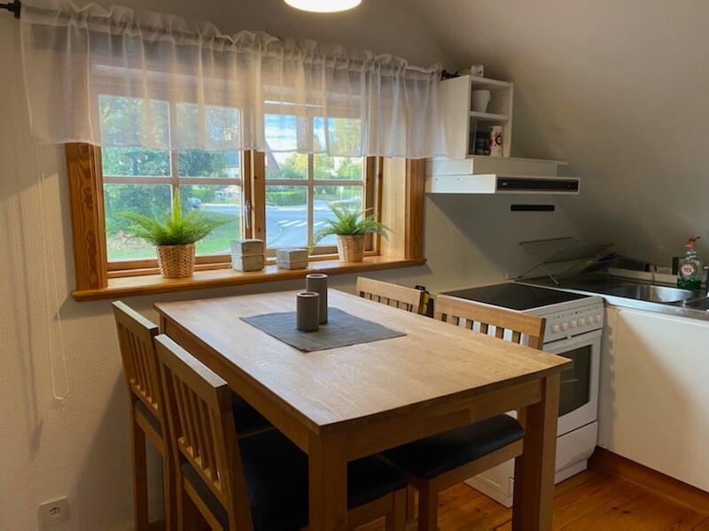 Un ático luminoso en una casa privada con una hermosa vista del lago Västra Nedsjön. El ático tiene una ubicación rural cerca de Gotemburgo y Borås. La zona tiene muchas posibilidades de excursiones, como Liseberg, Universeum, el Museo Textil y bonitas excursiones en el archipiélago de Gotemburgo. En la zona hay lagos para nadar, bonitos senderos para caminar y correr, posibilidad de pescar, recoger bayas y setas. Inodoro y ducha propios en el apartamento. El alojamiento es adecuado para dos adultos o dos adultos y dos niños.