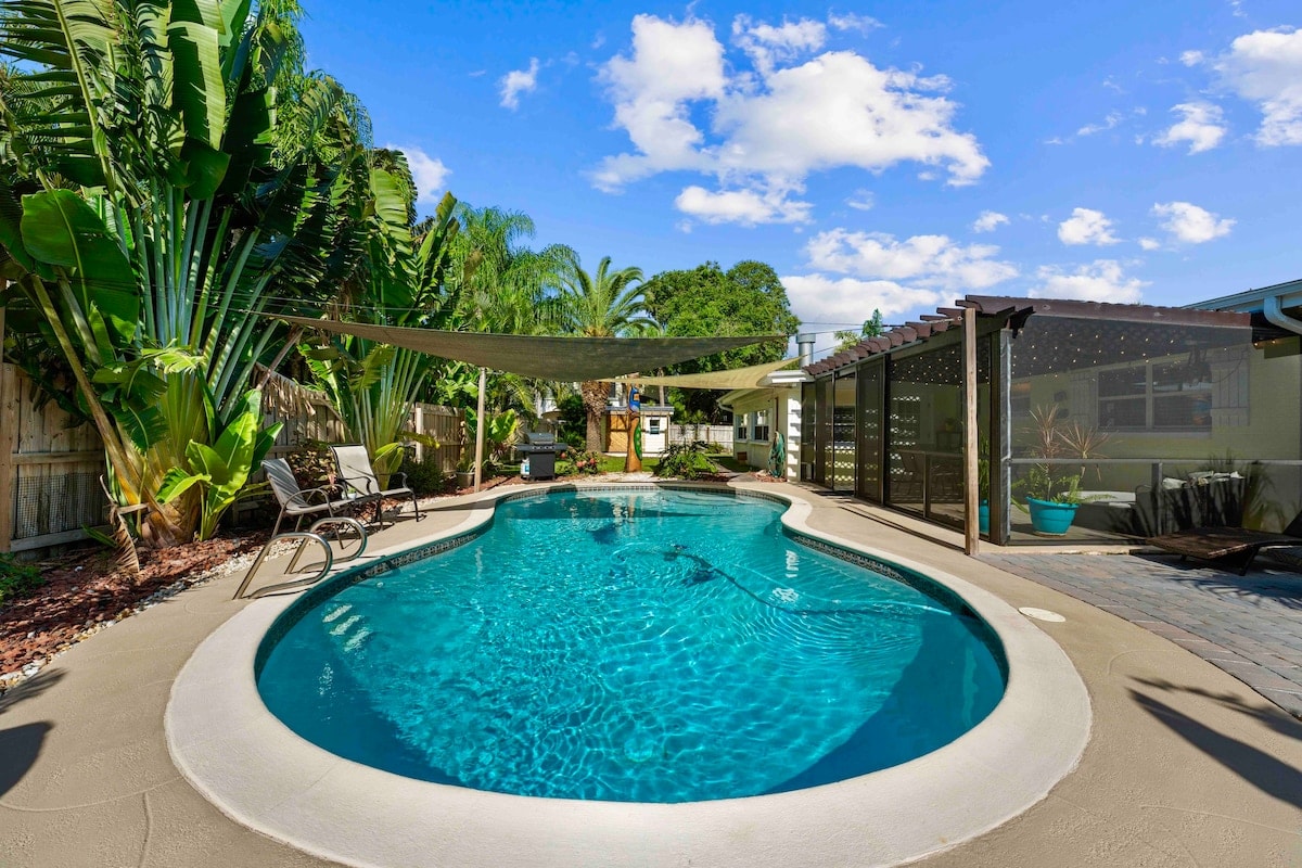 ¡El acogedor encanto de Cocoa Beach te espera! Nuestro calendario y nuestras tarifas están siempre actualizados; simplemente ingresa tus fechas y haz clic en “Reservar ahora”. Este hogar iluminado, espacioso y apto para familias cuenta con piscina privada, bañera de hidromasaje junto a la piscina, cabaña tiki y un divertido fuerte en el árbol para los niños. Disfrute de un mobiliario moderno y cómodo, y de mucho espacio para relajarse. Para tu tranquilidad, también realizamos una limpieza a vapor entre una estancia y otra.