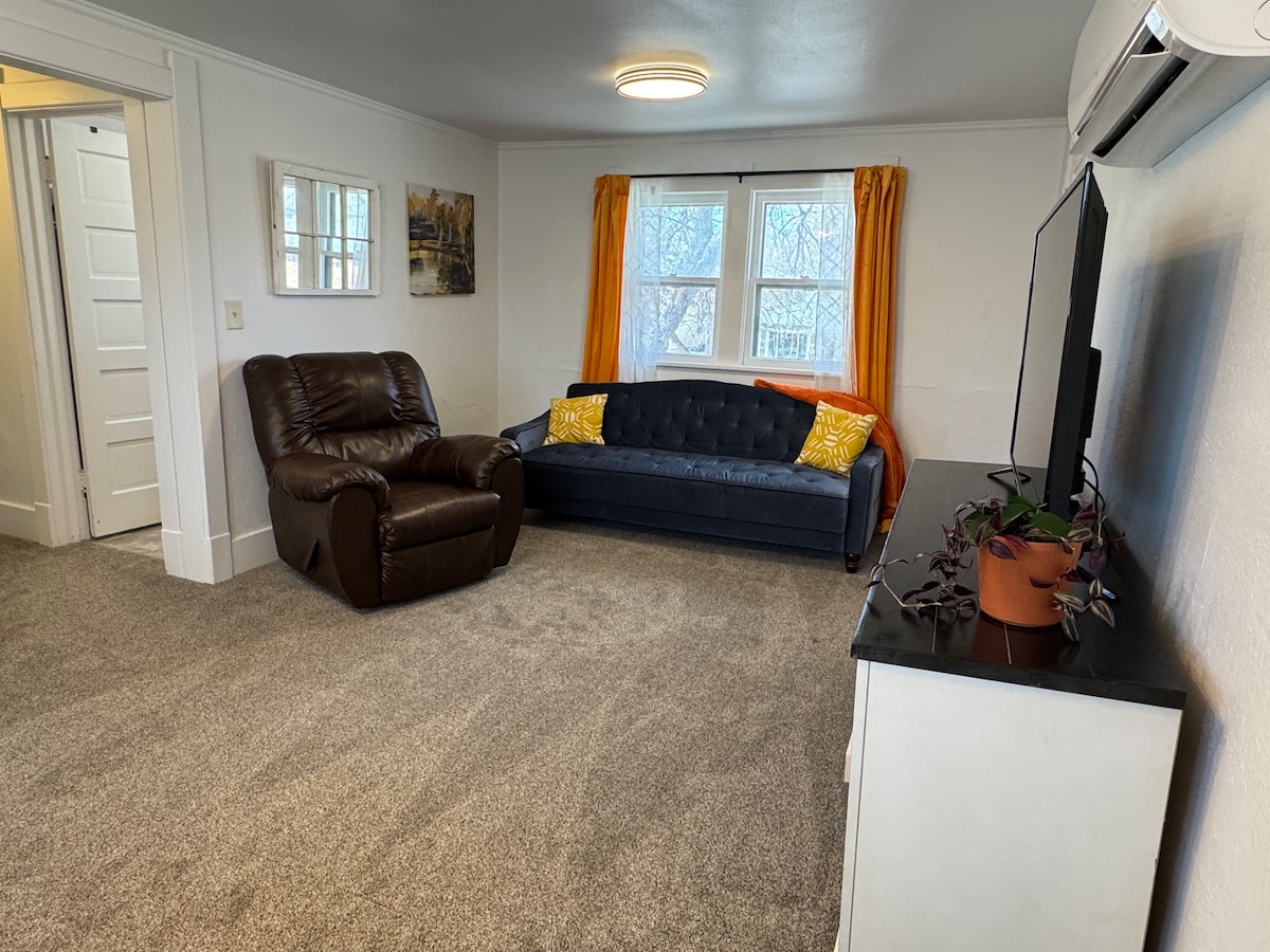 Un apartamento moderno de un dormitorio en el centro de Casper. Ideal para ir caminando a restaurantes, tiendas y bares, tanto si buscas una escapada de fin de semana como si simplemente estás de camino a otra aventura. Este es un gran espacio limpio para relajarse y sentirse como en casa. Encontrarás toques modernos que incluyen un colchón de espuma viscoelástica de 14 pulgadas y un sofá cama de espuma viscoelástica, cortinas opacas en el dormitorio y TV inteligente. Se admiten mascotas, ¡añádelas a tu reserva!
