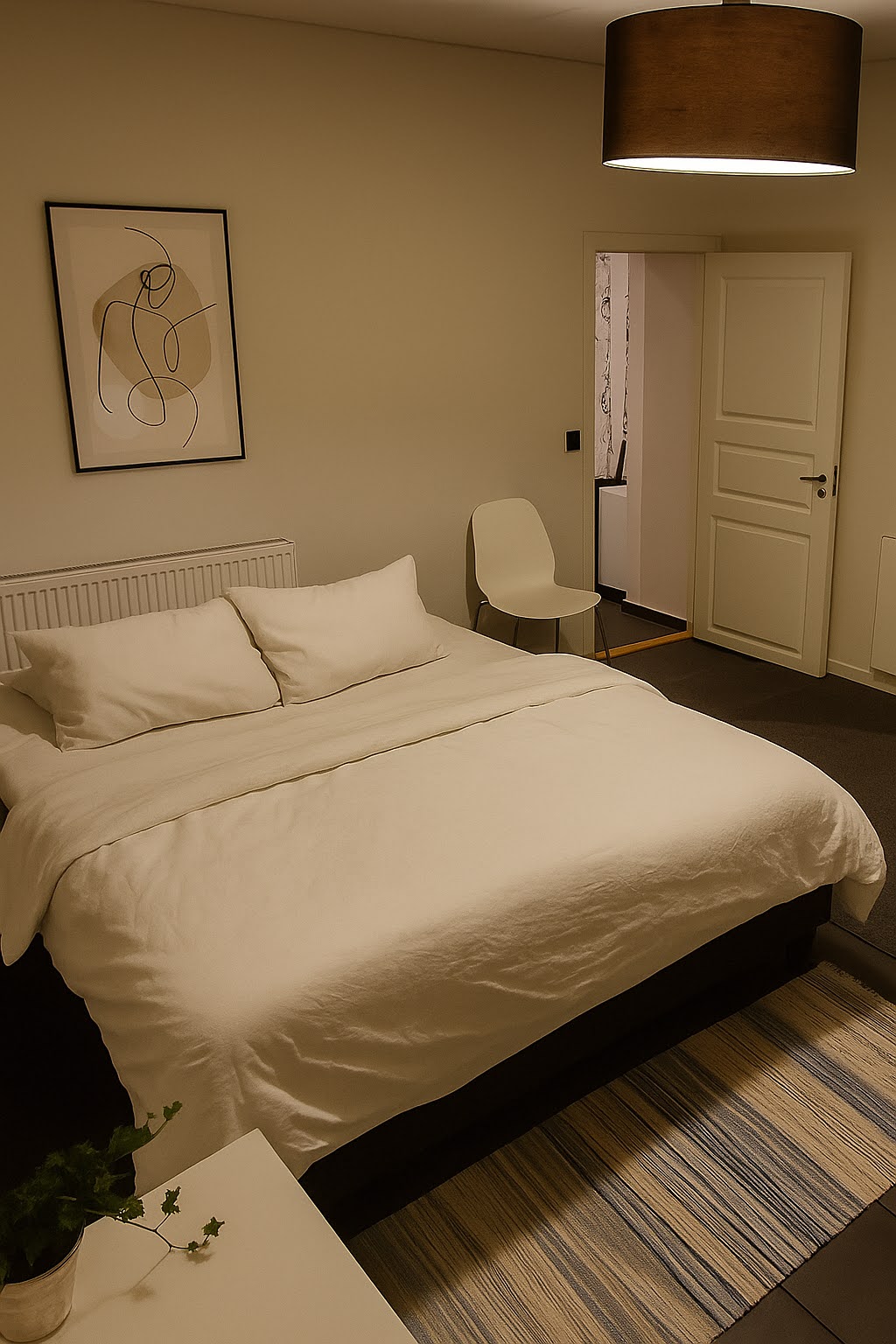 Apartamento tipo estudio fresco y recién construido con mucha luz solar. - Cama tamaño king 210 x 210 cm. - Sofá convertible de 145 x 200 cm. Todo el apartamento es de 55 m² y es todo tuyo durante tu estancia. - Aparcamiento gratuito en la calle justo fuera de la casa. - Tienda de comestibles cerca. - 2 estaciones de autobuses cercanas. A 20-30 minutos del centro de la ciudad en autobús. - A 15 minutos del centro de la ciudad en coche. Si tienes alguna otra pregunta, no dudes en ponerte en contacto con nosotros.