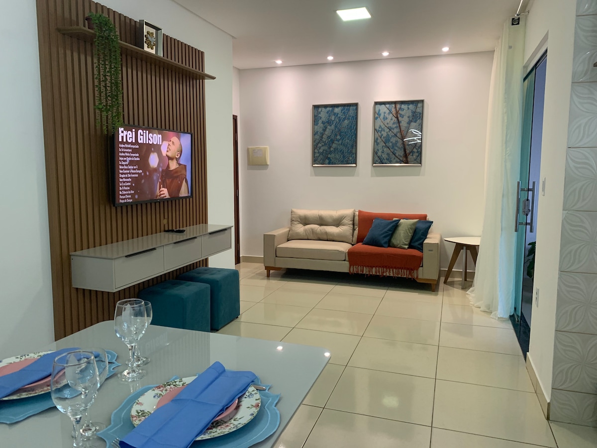 Acogedora casa familiar con ocio privado. Disfruta de un amanecer tranquilo escuchando el canto de los pájaros, con toda la comodidad y el ocio que tu familia merece, cerca de los principales puntos de Cariri. Piscina refrescante y un hermoso jardín 2 dormitorios con aire acondicionado y wifi En la frontera Juazeiro/Barbalha, con fácil acceso a la carretera de circunvalación que conecta las ciudades de Juazeiro, Crato y Barbalha. Cerca de excelentes restaurantes y bares; a solo 15 minutos de Cariri Shopping.
