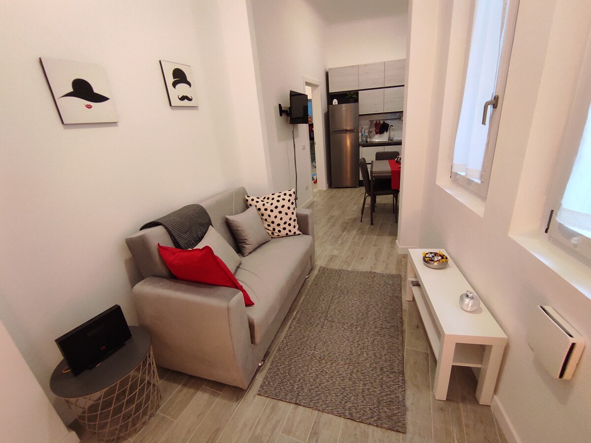 Este es un refinado apartamento de doble volumen, ideal para una pareja, pero también para una familia con 1-2 hijos. En la planta baja se encuentra la cocina y el salón con un sofá (que se puede convertir en una cómoda cama doble), y en la planta superior, la cama doble con un baño dividido en 3 zonas, lo que lo hace único. La habitación se caracteriza por los tonos azules y, con respecto a su historicidad, se han conservado los estucos originales de los antiguos techos abovedados.