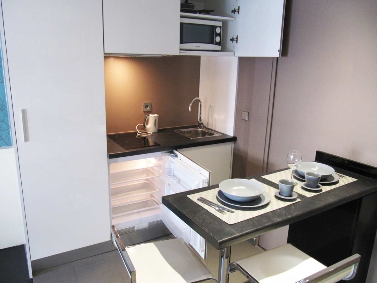 Apartamento Doble o Twin de 22 m², ideal para estancias largas. Este cómodo apartamento está pensado para quienes buscan funcionalidad y confort durante su estancia en Barcelona. Dispone de una cocina compacta equipada con hervidor eléctrico, fregadero y frigorífico bajo encimera, ideal para preparar comidas sencillas. Además, cuenta con aire acondicionado, Wi-Fi y TV de pantalla plana para disfrutar de una estancia práctica y confortable.