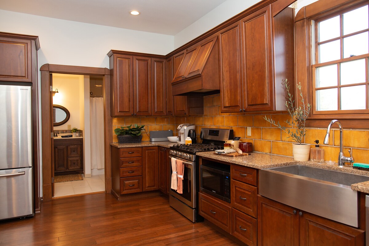 Relájate con toda la familia en este encantador alojamiento de dos dormitorios y un baño. Esta estancia incluye una cama king y una queen, con un televisor en cada dormitorio. Puedes comer en uno de los muchos restaurantes locales o preparar tu propia comida en la cocina totalmente equipada. Se incluyen un lavavajillas, microondas, freidora de aire, Keurig, tazones para mascotas y platos/utensilios para niños pequeños. Aprovecha el patio trasero vallado, la chimenea y la parrilla de gas. Encontrarás una cinta de correr, una elíptica y pesas en el garaje.