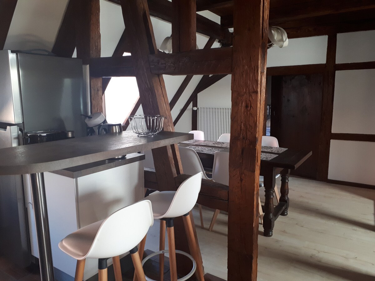 Enjoy a romantic escape in our charming 4-star loft in the heart of Barr, nestled in the courtyard of an 18th-century Alsatian half-timbered house. This spacious and fully equipped haven offers an open-plan kitchen, a cozy living area, a queen-size bed, walk-in shower, separate toilet, dressing room, air conditioning and Smart TV. A tandem is available for two, as well as a charging station for e-bikes and a private garage. A unique, refined, and welcoming place for a truly special stay.