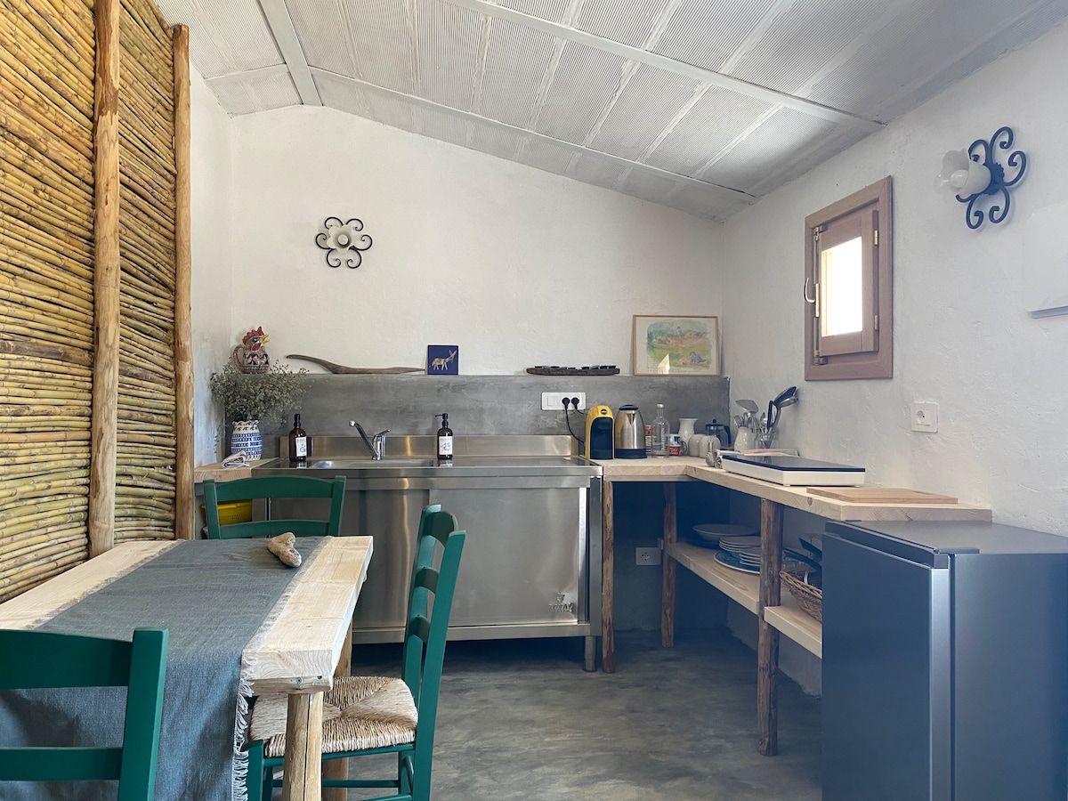 Minicasa situada en Porto Pollo, «paraíso del kitesurf y el windsurf». Es un estudio totalmente equipado. Perfecto para parejas o familias pequeñas, hay una cama tamaño queen y un sofá cama. Desde el patio cubierto se puede ver una bahía y un valle. La cocina está totalmente equipada (microondas, cafetera y caldera). Una segunda ducha está situada en el patio. Incluso se incluyen wifi, televisión, lavadora y aire acondicionado. Además, hay un aparcamiento privado. Está a 5 km de Palau y a 35 km de Olbia.