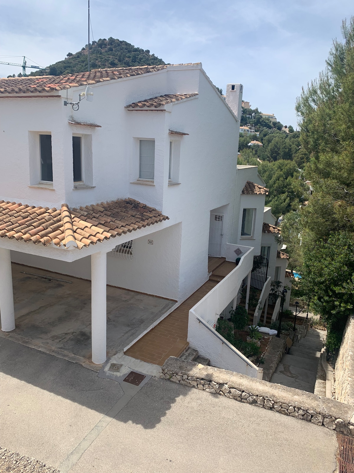 Casa muy privada en zona tranquila a los pies del Montgó. Aire acondicionado y calefacción en todo la casa. Piscina de 13'5x 4'5mts y Jacutzzi. Piscina climatizada(preguntar precio) Sol todo el dia. A 1 minuto andando a una clínica privada, supermercado,cafetería y a 10 mts andando a restaurantes. A 5 mint. con coche al Casco histórico, y a 15 minutos a la playa del Puerto, donde encontrarás tiendas tradicionales y restaurantes. 5 camas, 1 cama Queen, 2 baños, enorme terraza.