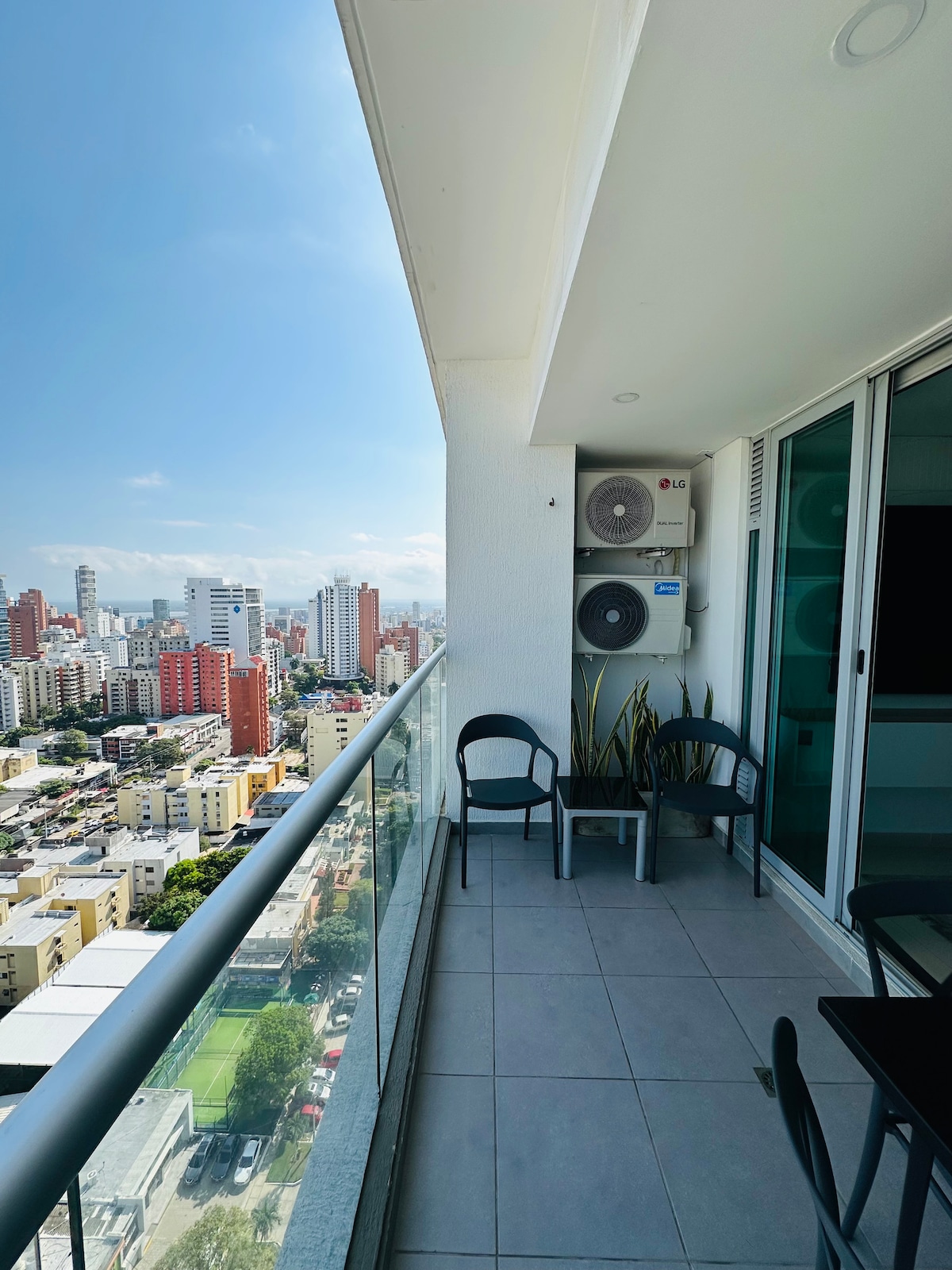 Apartamento PISO 20 OPEN CONCEPT 75 metros BARRIO ALTO PRADO cerca del centro comercial VIVA Espacio alcoba A/C Sala y comedor A/C 2 Baños Estudio Cama king Televisor de 85 pulgadas Walking closet Cocina abierta Zona de lavandería Terraza en la sala Balcón en la alcoba Ventanas piso techo Estamos a 15 minutos de las playas de puerto mocho. EL edificio cuenta con Piscina ,BBQ y turco piso 23 horario según lo estipule la administración 10am - 5 pm ) Vigilancia privada las 24 horas