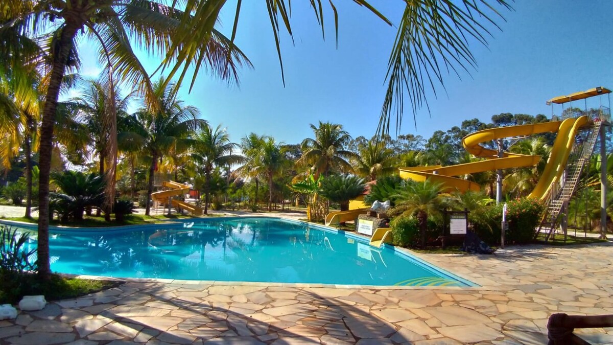 Apto. para un máximo de 6 personas, con 2 dormitorios, todas las habitaciones con aire acondicionado y televisión. Paquete de semana (Dom a Dom) o 4 días (Dom a qua o de qui a dom). Balada, minibar, microondas, secador de pelo y toallas, incluso en el área del parque. Acceso a las piscinas, toboganes, granja, sala de juegos, capilla, lago para pescar, recreación para todas las edades. Restaurantes y cafeterías asequibles con valores no incluidos en el paquete. ¡Disponible para la fiesta Peão 2026!