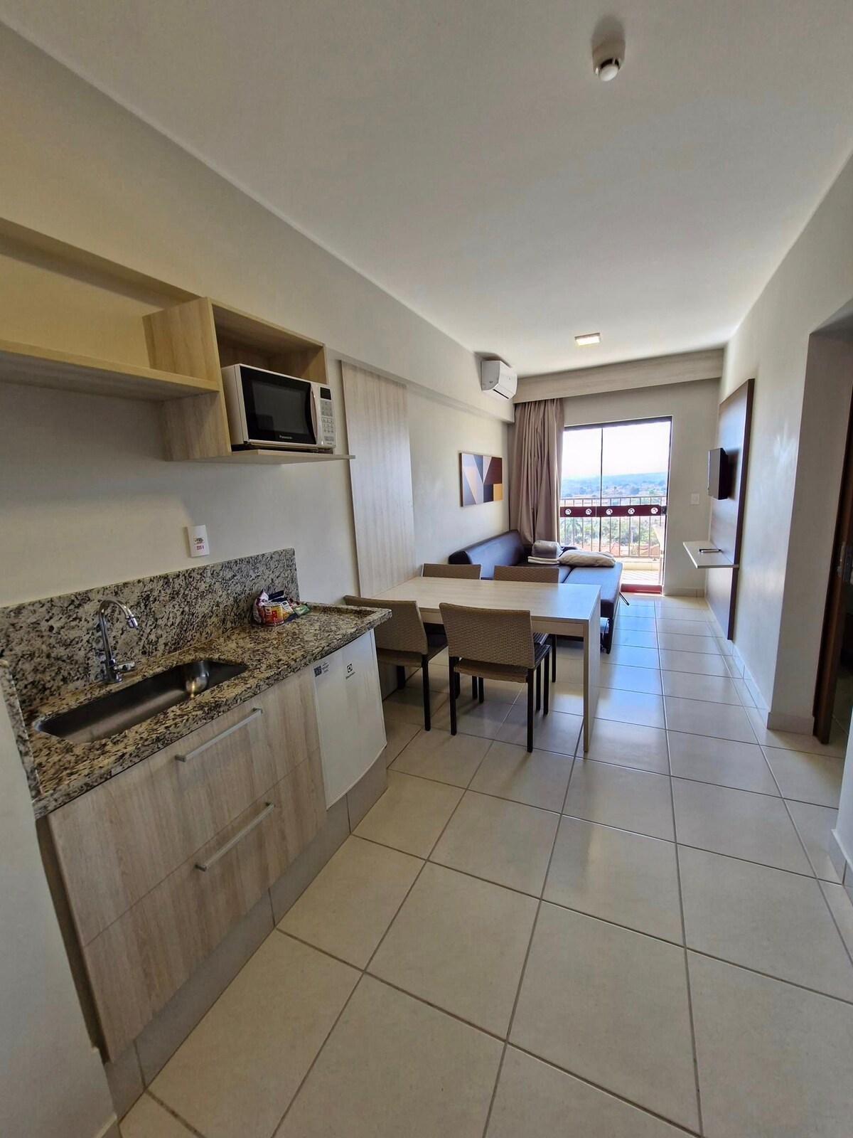 El apartamento tiene 1 dormitorio, con 1 cama tamaño queen y 1 cama individual, baño, sala de estar con sofá cama, cocina con minibar y microondas y balcón con balcón con balcón en el piso. También tiene aire acondicionado, TV por cable/satélite, artículos de aseo gratuitos, caja fuerte y secador de pelo. Acceso de huéspedes Cuando se hospede en el Resort, el huésped tendrá acceso a todas las instalaciones y acceso gratuito al parque acuático. Otras observaciones Por favor, ten en cuenta que los enchufes son de 220 V.