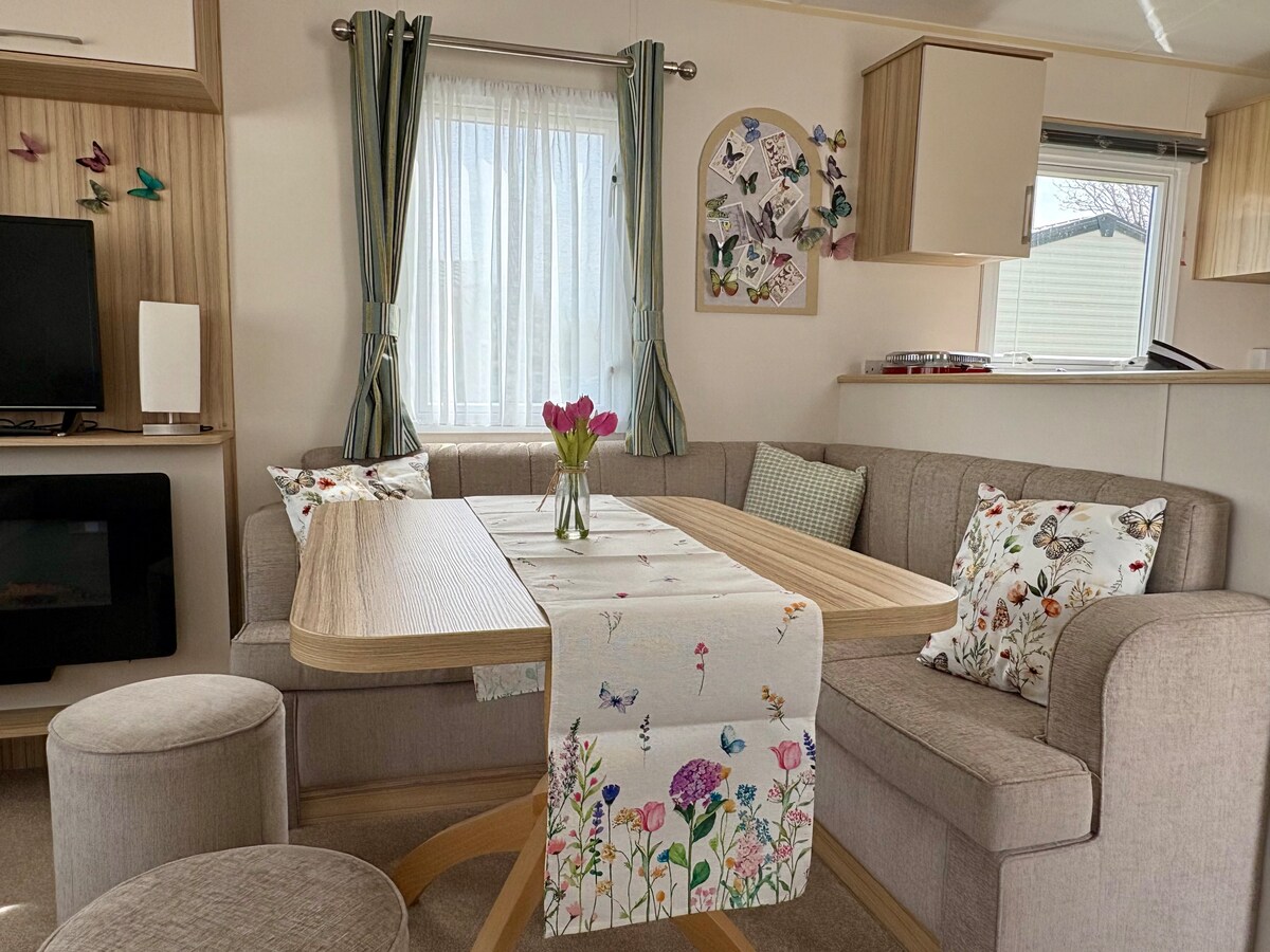 Un chalet bungalow bellamente presentado situado en el borde del parque vacacional Solent Breezes. Vistas completas al mar sobre el Solent desde la comodidad de la cocina de planta abierta y el salón. Edificio luminoso y espacioso ideal para relajarse en el gran sofá de cuero o en los muebles de ratán del jardín. En todos los climas siempre hay algo que ver por las grandes puertas del patio. Playa de piedras y rampa para barcos a pocos metros de la propiedad. Ideal para largos paseos viendo la puesta de sol y relajándose.