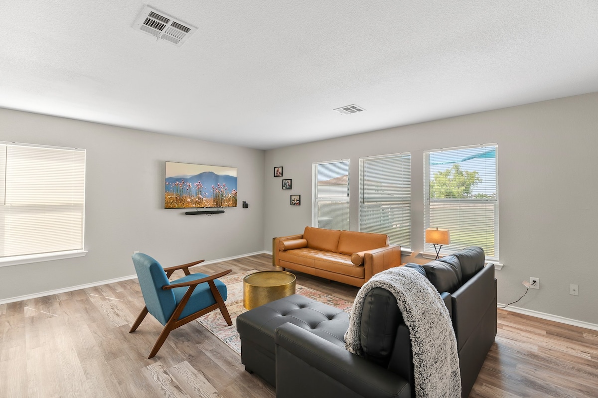 Alojamiento moderno y elegante cerca de Austin, perfecto para viajes de trabajo, estancias prolongadas o escapadas familiares. Disfruta de un diseño de concepto abierto con una cocina totalmente equipada, conexión Wi-Fi rápida, espacio de trabajo dedicado y un gimnasio privado en el garaje. Relájate en amplios dormitorios, aprovecha la lavandería en el hogar y disfruta de un fácil acceso a tiendas, restaurantes y autopistas principales. Diseñado cuidadosamente para la comodidad, la productividad y la relajación, este refugio de Pflugerville te hace sentir como en casa.