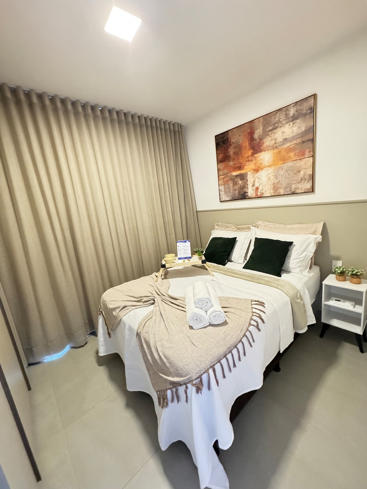 El apartamento es un hermoso y acogedor (pequeño) ESTUDIO amueblado con varios artículos para que te quedes varios días, el colchón es de espuma y muy firme, el televisor contiene varios canales deportivos, películas, etc. Incluso hago la limpieza de la AP (dentro del edificio tiene un mercado con varios intentos de bebida y comida para hacer la vida más fácil para el huésped), ¡el edificio es tranquilo, silencioso y de fácil acceso! El check-in se puede hacer en la entrada o conmigo, un edificio cerca de 2 centros comerciales,bares, Fatesa, Unip, pizzería, gasolinera.