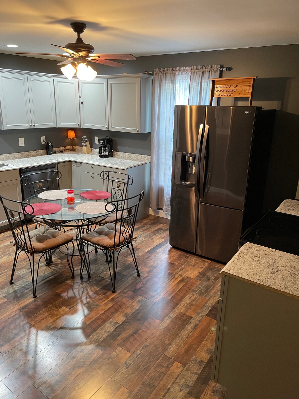 Shady Pines Inn is a vacation rental located .7 mile from Exit 133 off interstate 64. Ten minutes to Cave Run Lake and Morehead. 3 bedrooms, king, queen & 2 twin beds, 2 new cots with memory foam toppers. 1.5 baths,living room with 2 couches & 3 chairs. Full kitchen, accessible tub/shower. Snacks, cereal/granola bars, oatmeal, donuts, bread, bagels, local eggs, coffee, tea. Any combination of these items will be offered.