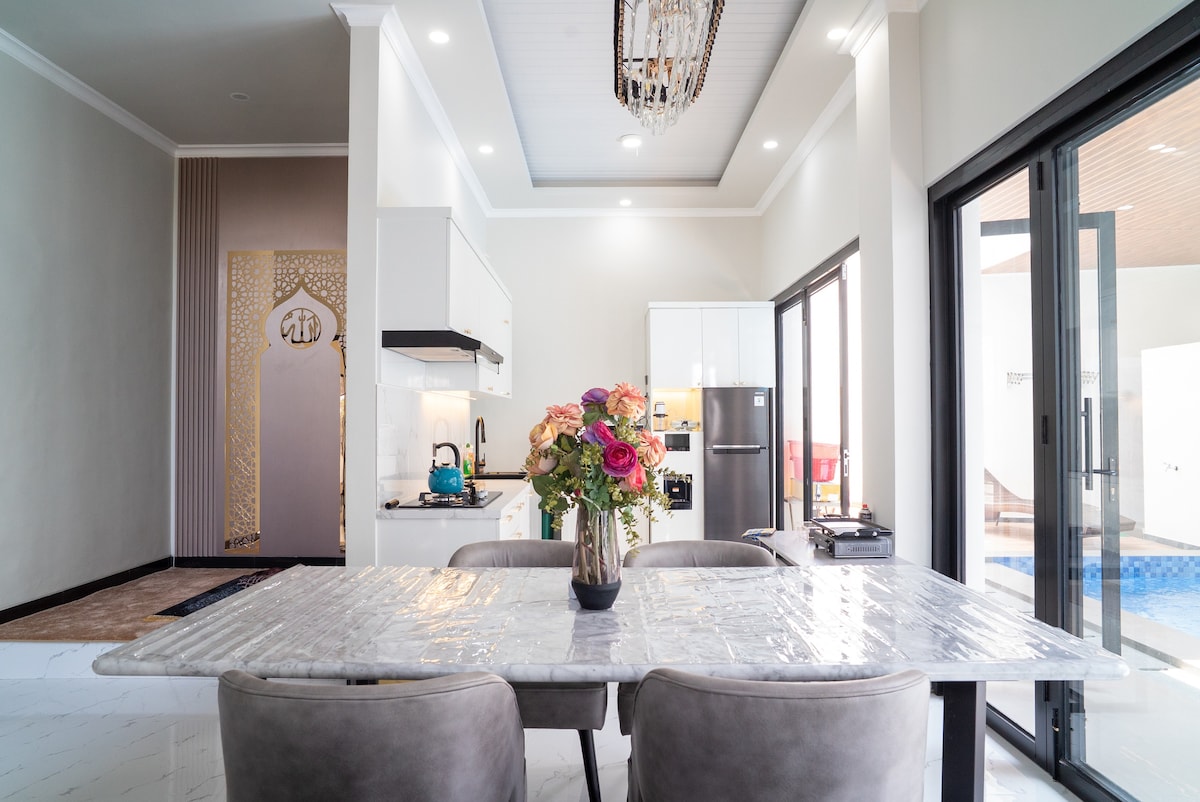 3 dormitorios (cama queen - 2 aire acondicionado y 1 ventilador) 2 baños (ducha y calentador de agua) 2 camas de viaje Piscina privada Terraza Cocina (estufa + utensilios de cocina + juego de utensilios + magicom + juego de cubiertos + dispensador caliente y frío + refrigerador) Juego de barbacoa cochera (2 automóviles) Televisión inteligente de 50 pulgadas Karaoke Wi-Fi y Netflix gratis Té, café y noddle instantáneo gratis 1 vez A 1 minuto del Paolo Fest A 2 minutos de BNS A 4 minutos del zoológico secreto de Batu A 8 minutos del parque Jatim I. A 8 minutos del parque Dino (Jatim Park III). A 8 minutos de Alun2 Batu.