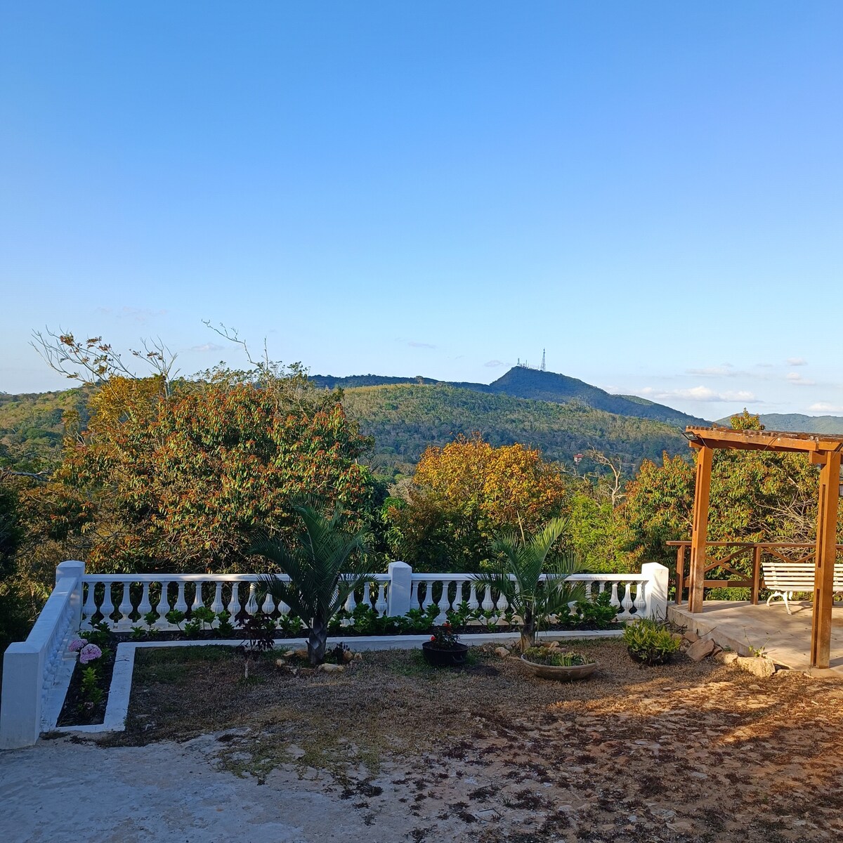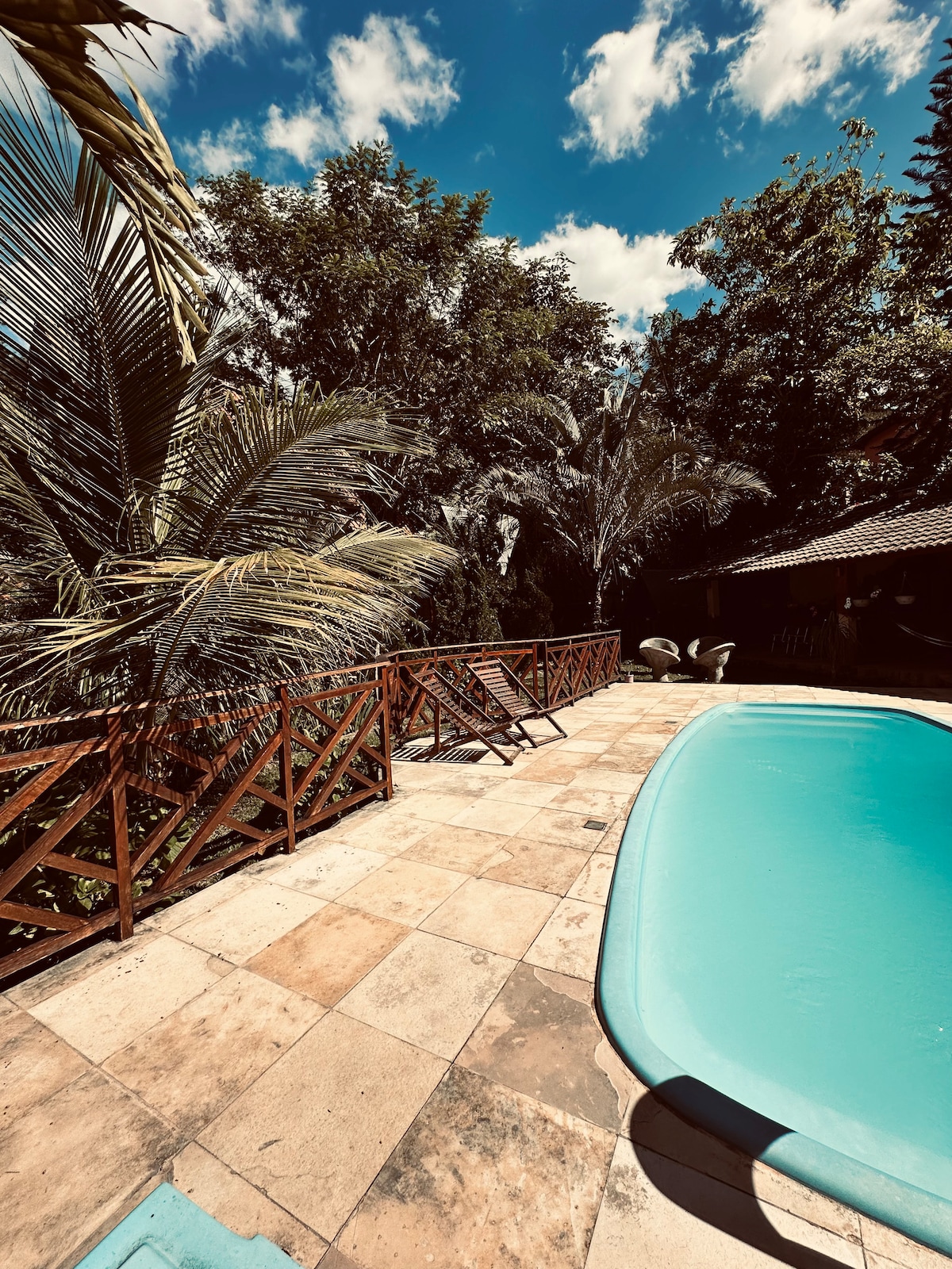 Cuenta con piscina, hidromasaje y parque infantil. Tiene una vista fantástica de las montañas, ya que se encuentra en la cima de una de ellas. Se encuentra dentro de un bosque nativo muy bien conservado donde predomina el canto de los pájaros. El espacio se encuentra a 5 km del centro de la ciudad de Guaramiranga. Es excelente para parejas y familias con niños, ya que es seguro y excelente para el ocio y el descanso. Cuenta con 4 suites más habitación, todas con cama de matrimonio. 10 personas en camas con mucha comodidad. Amplia sala de estar/comedor. TV.