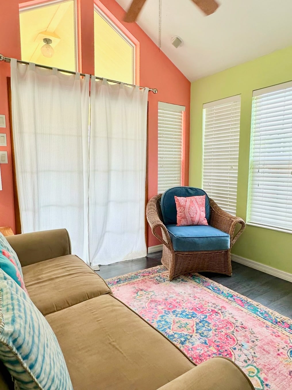 Te damos la bienvenida a Bitty Bliss, ¡tu acogedora escapada a Tiny Cottage! Ubicado a solo 20 minutos de Disney y Universal, con tiendas y restaurantes a solo 5 minutos, es perfecto para la relajación y la aventura. Disfruta de fantásticas comodidades como pickleball, minigolf, un nuevo gimnasio y una sala de recreación, ¡todo sin mascotas sin humo y sin complicaciones sin tarifas de centro vacacional o estacionamiento! Duerme cómodo en la cama tamaño queen de un dormitorio o en el sofá cama súper acogedor, con capacidad para hasta cuatro huéspedes. Encanto, comodidad y diversión en un solo lugar